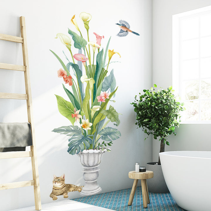 Chinese style wall sticker potted plant calla lily turtle back bamboo cat bird wall wallpaper wall decoration living room sticker