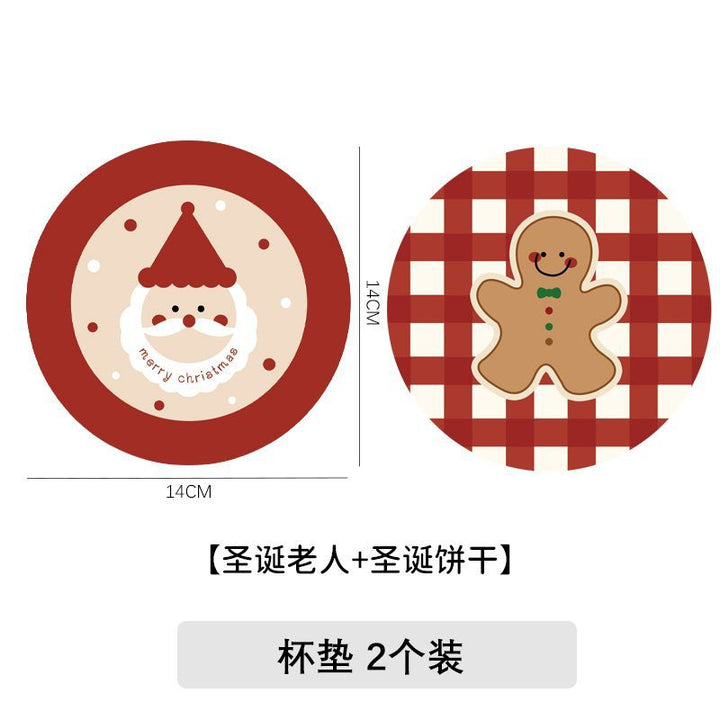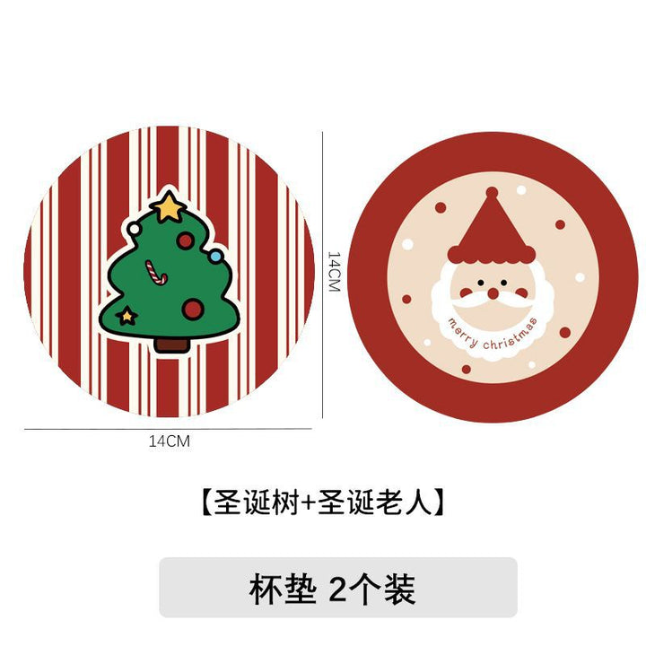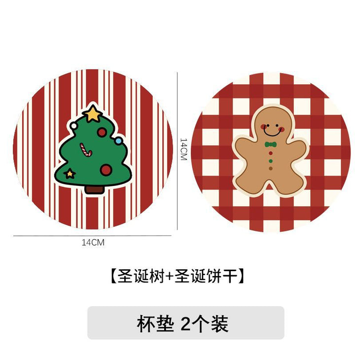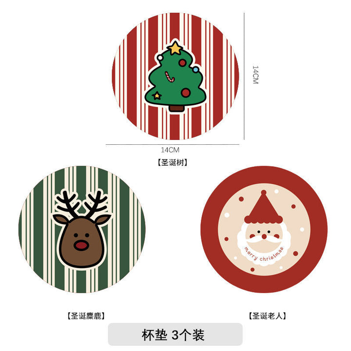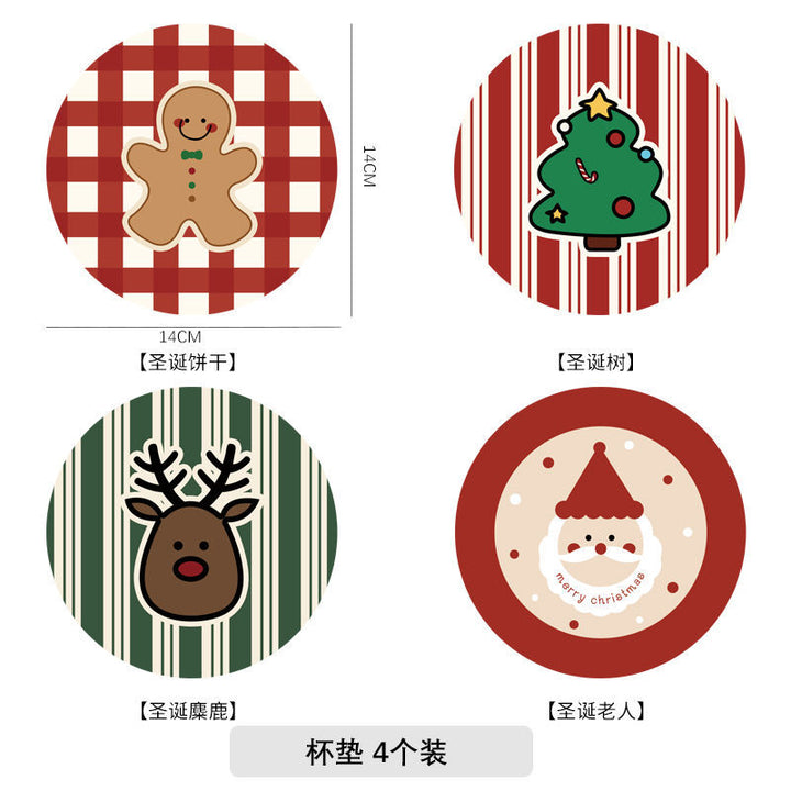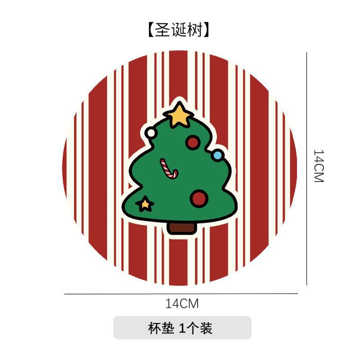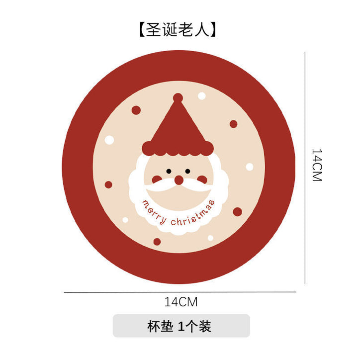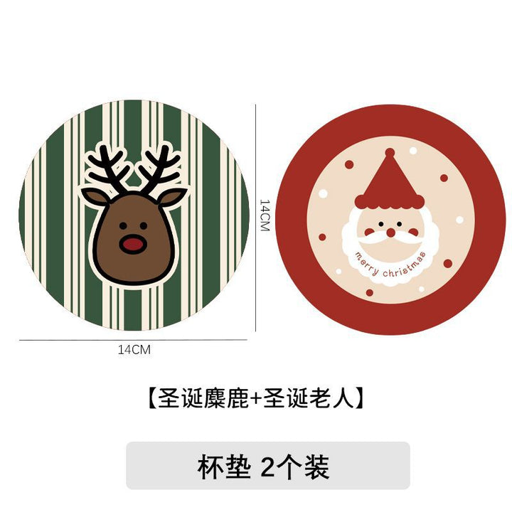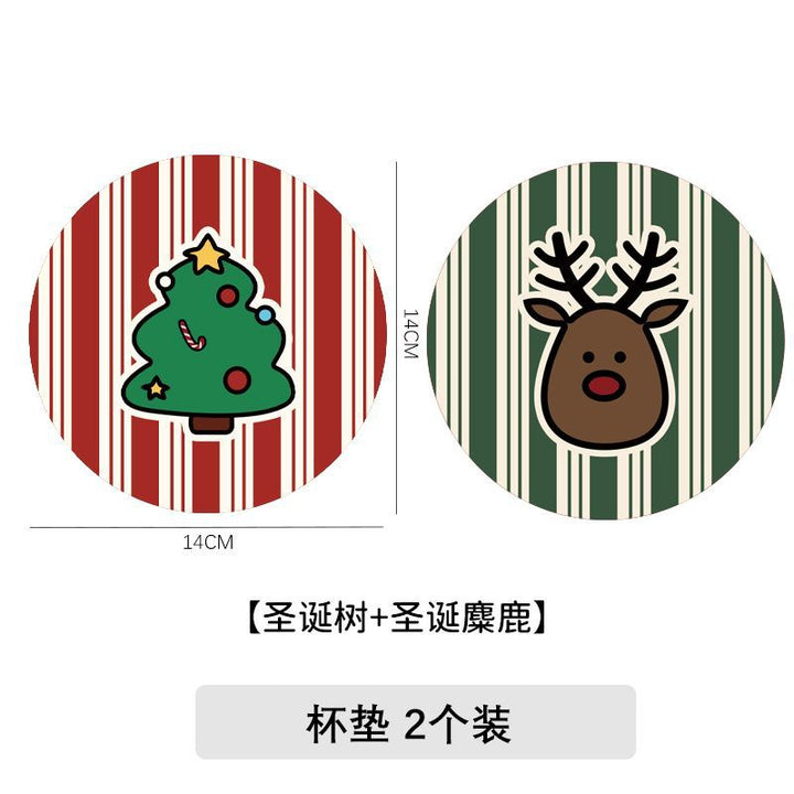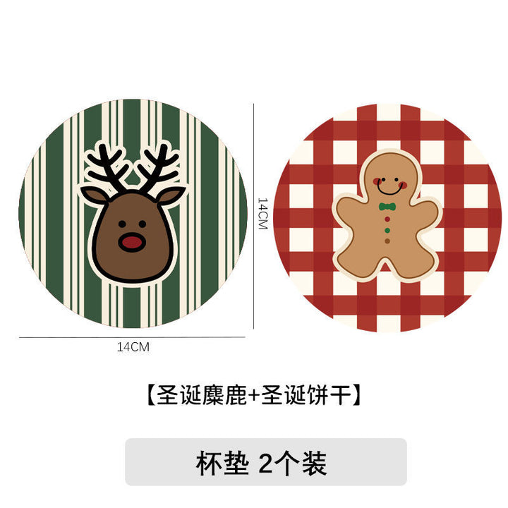 Christmas gift coaster, desktop teacup, absorbent mat, dishes, placemats, drain mat, round leave-in, non-slip and moisture-proof mat.