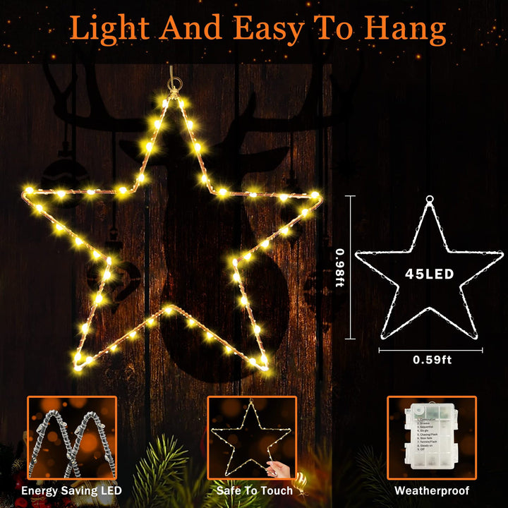 Christmas window lights hanging lights, outdoor waterproof decoration Family Christmas tree Porch Holiday party decoration Warm white