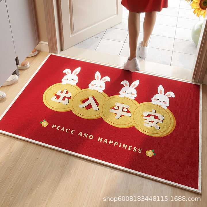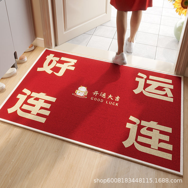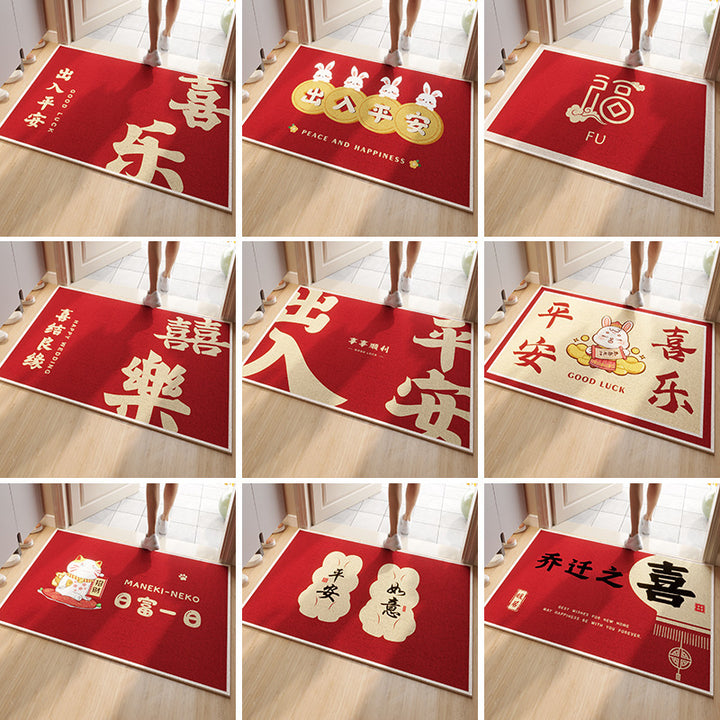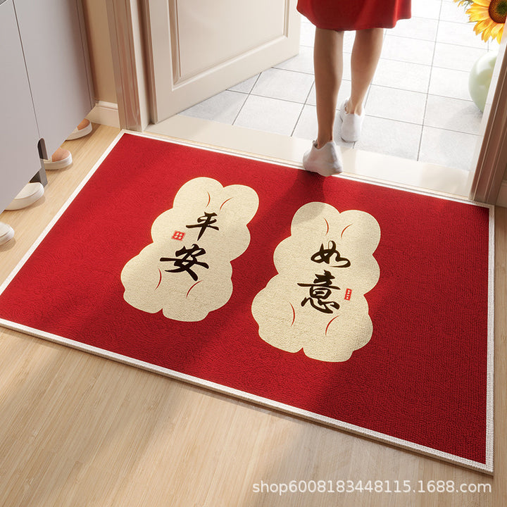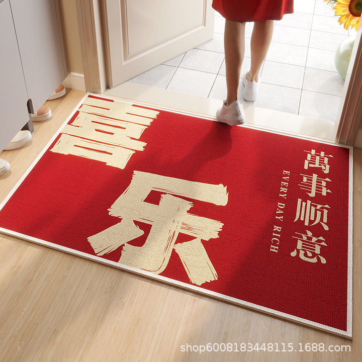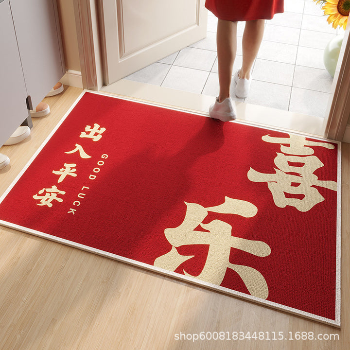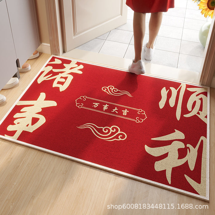 Circle velvet red entrance floor mat high-grade door mat, door change insole New Year's leave-in non-slip foot mat