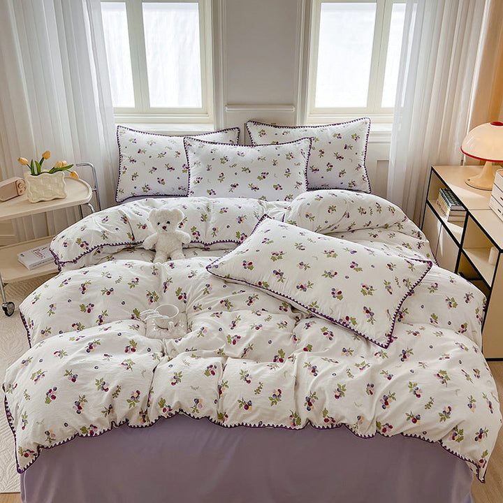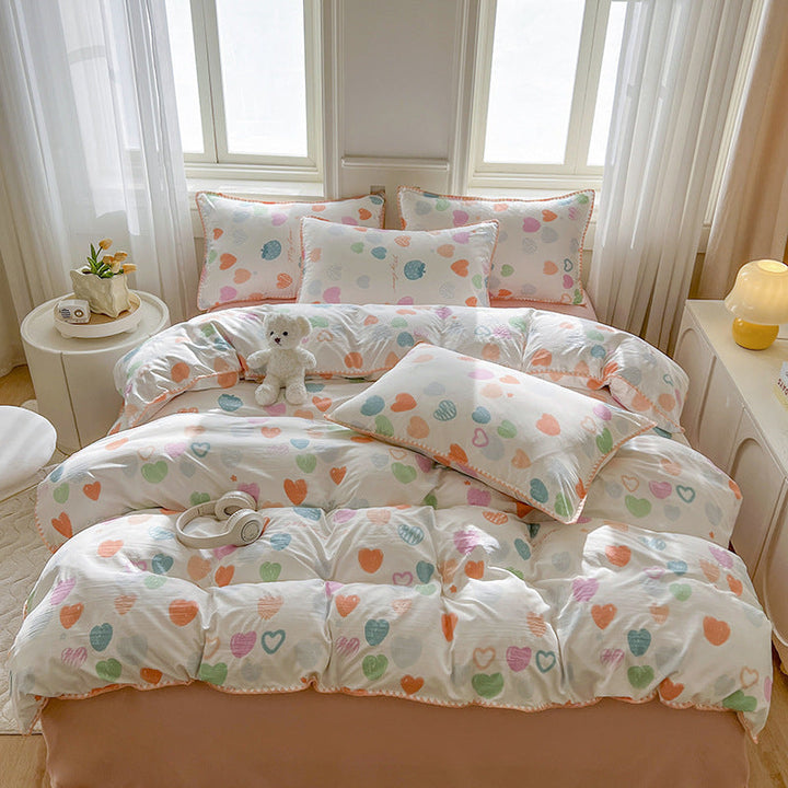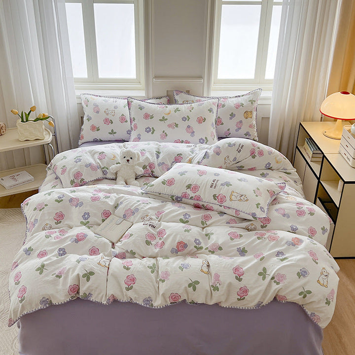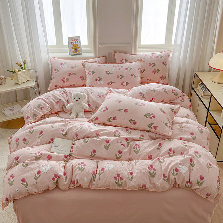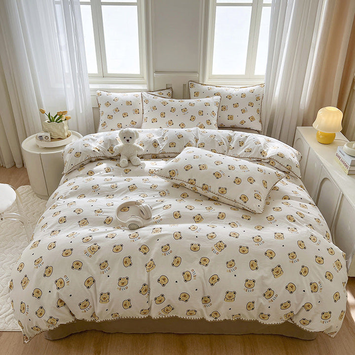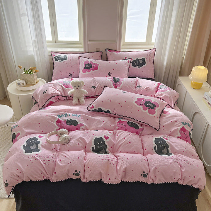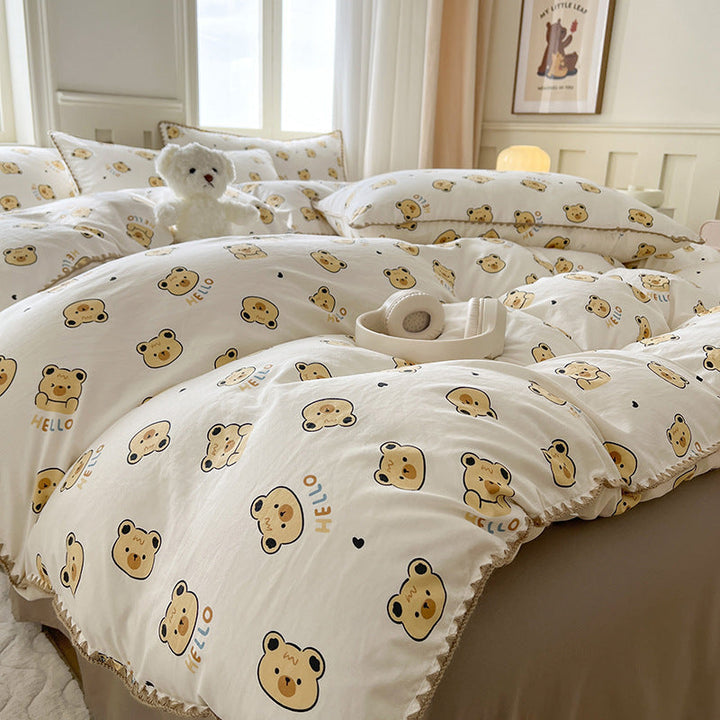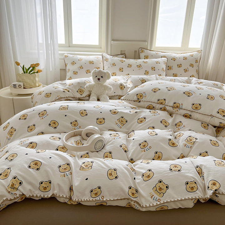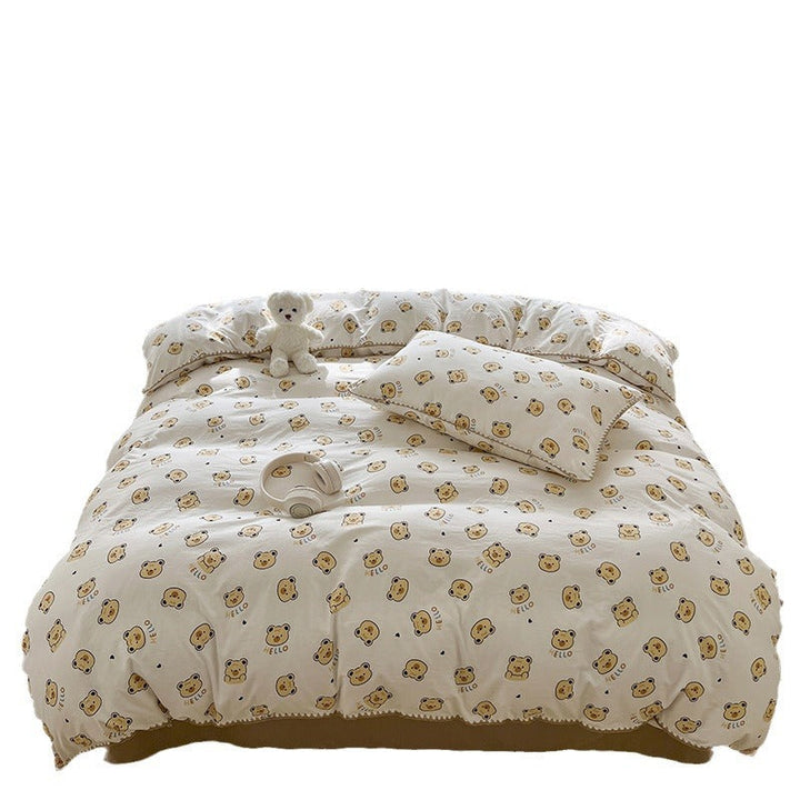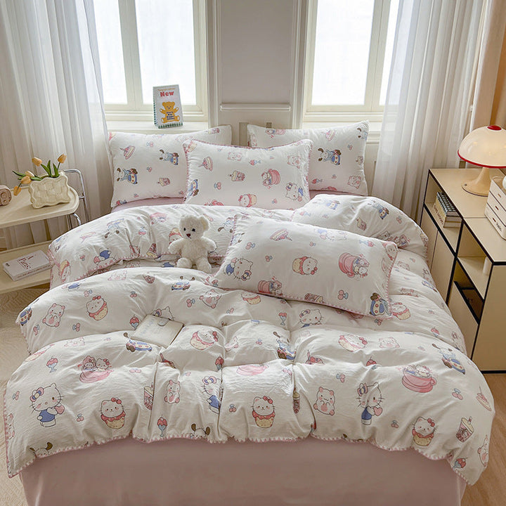 Class A cartoon shell embroidery washed double yarn four-piece set, our city household quilt cover, bed sheet, student dormitory three-piece set