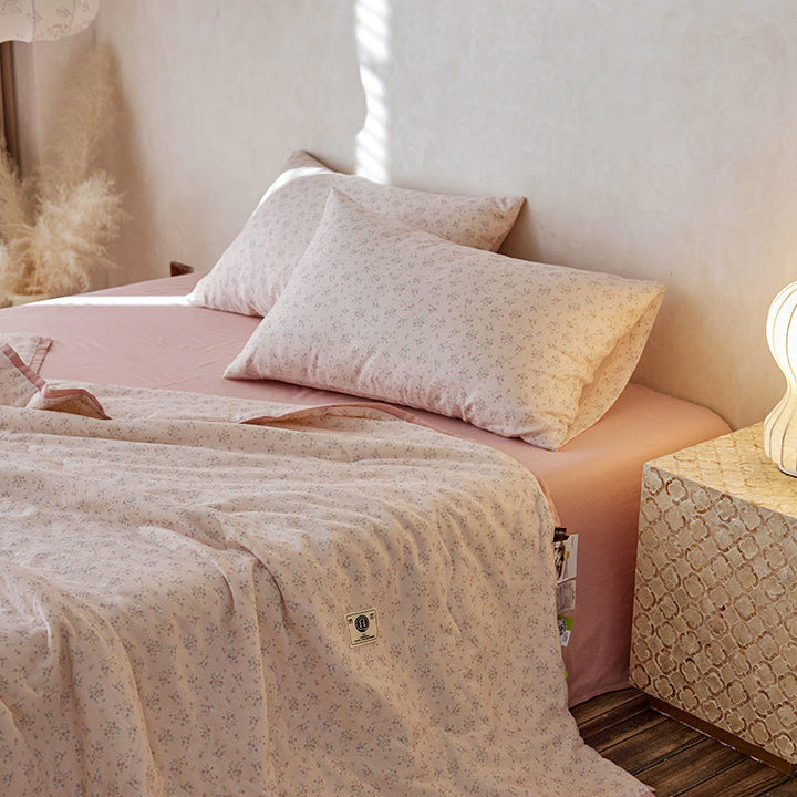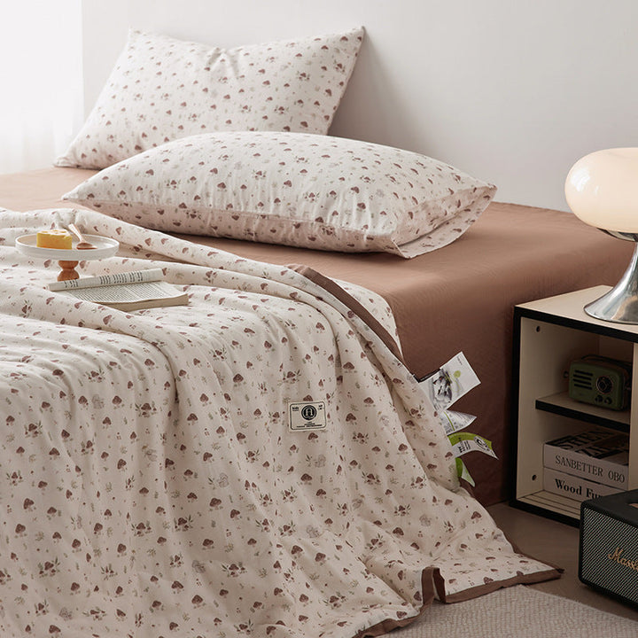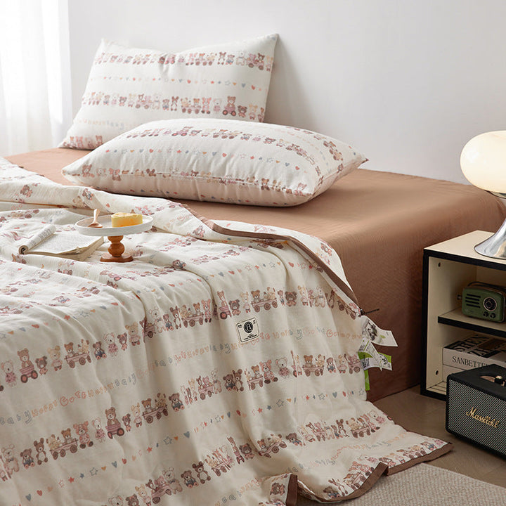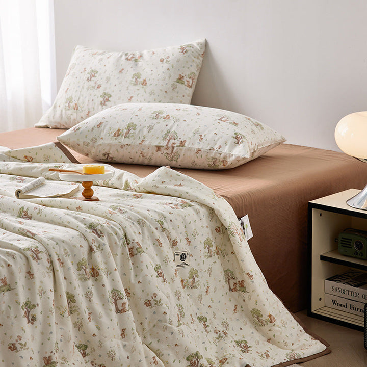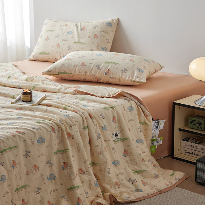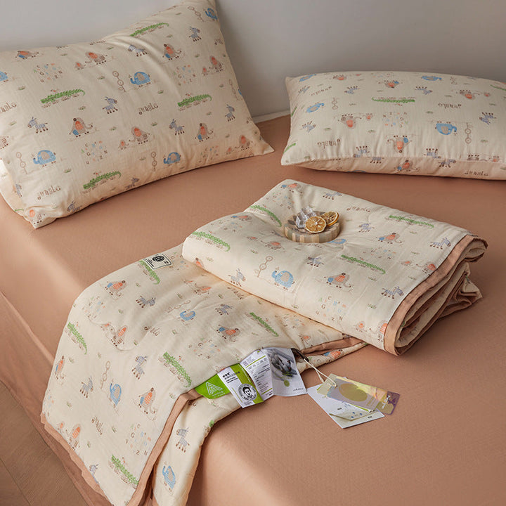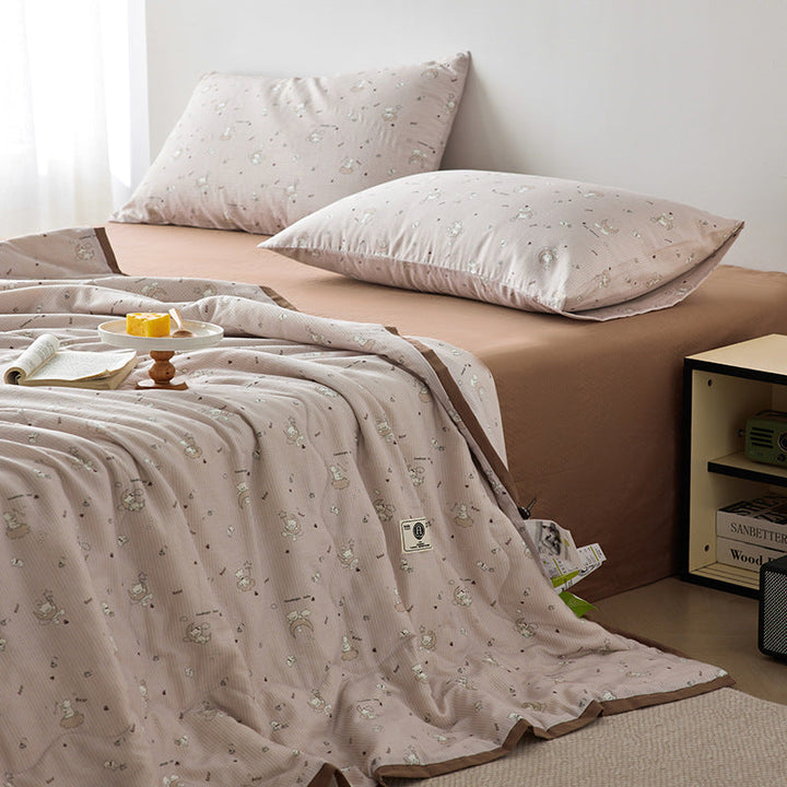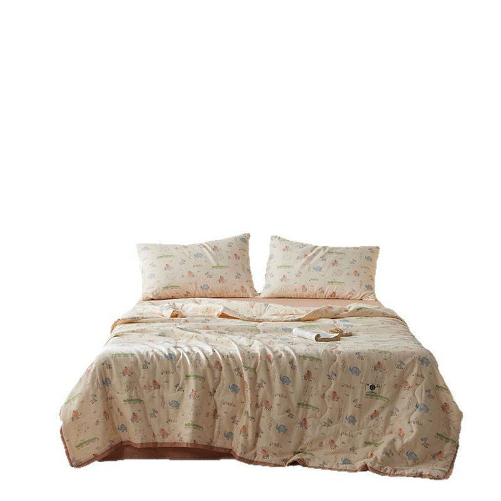 Class A cotton aerobic double-layer yarn summer quilt four-piece set of pure cotton air conditioner quilt summer dormitory soybean quilt summer coo...