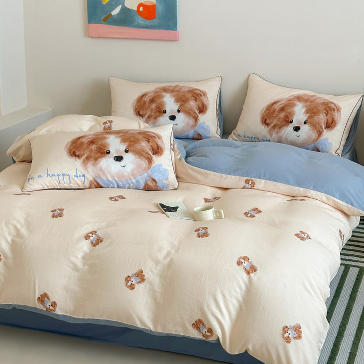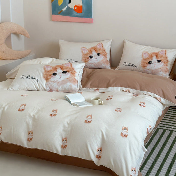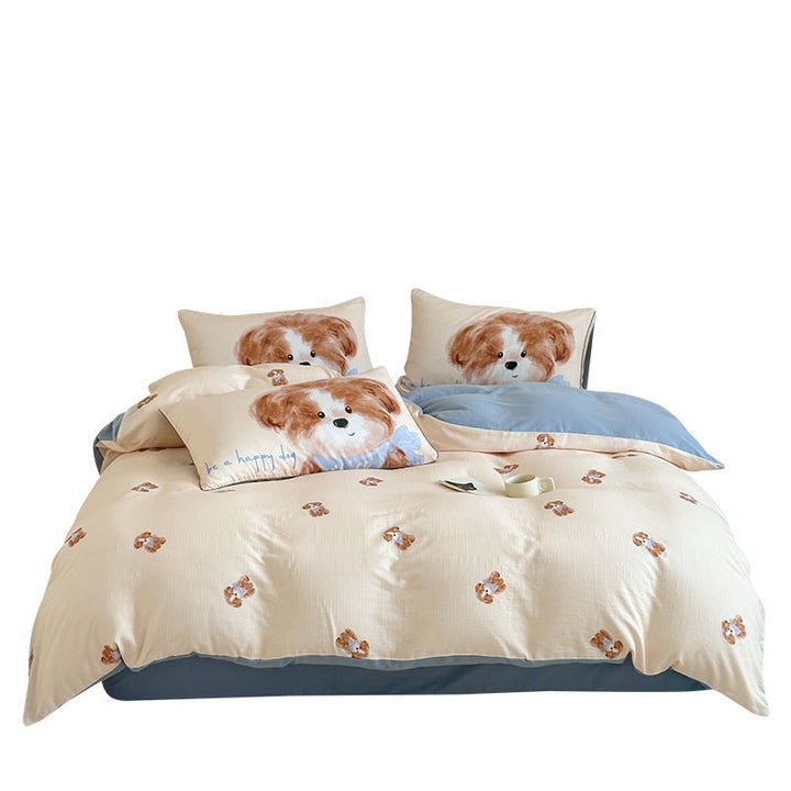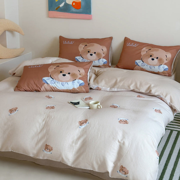 Class A cotton double-layer yarn digital printing four-piece set pure cotton cartoon single double dormitory three-piece set wholesale group