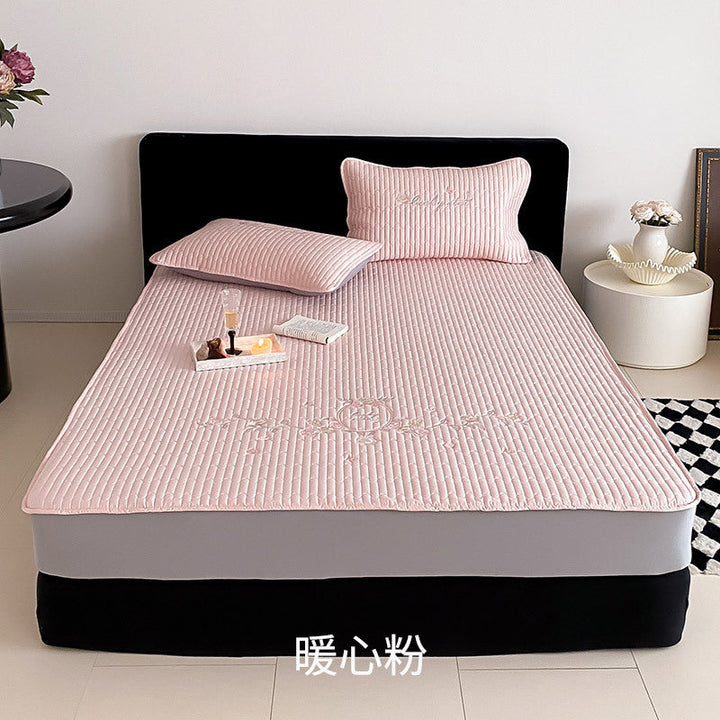 Class A cotton long-staple cotton quilted quilted cotton embroidered mattress three-piece set four-season universal mattress protective cover pink ...