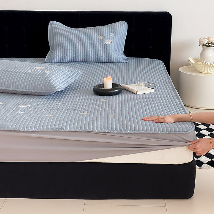 YouY Cotton Quilted Padded Sheet - Starlight Blue, YouY cotton quilted padded mattress - milk tea coffee, YouY Cotton Quilted Padded Sheet - Warm Heart Powder, YouY cotton quilted padded mattress - soufflé, YouY Cotton Quilted Padded Sheet - Star Grey |