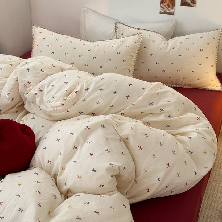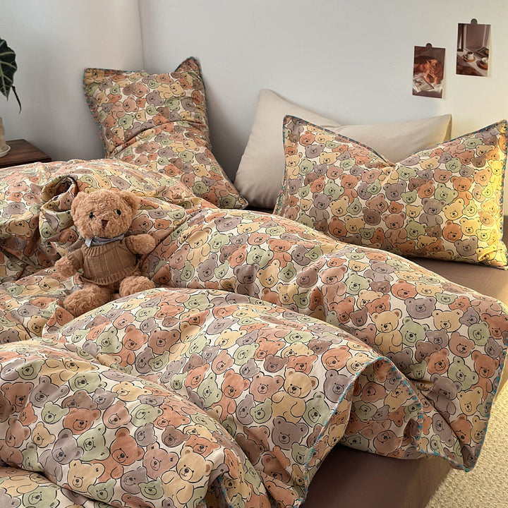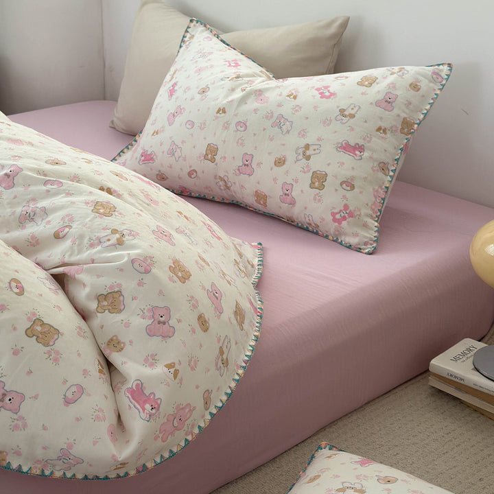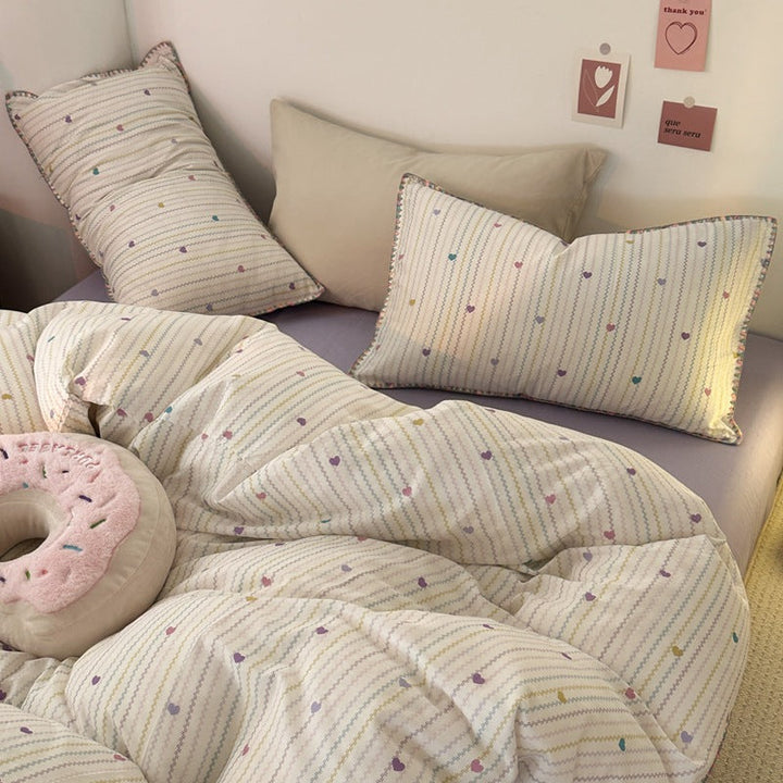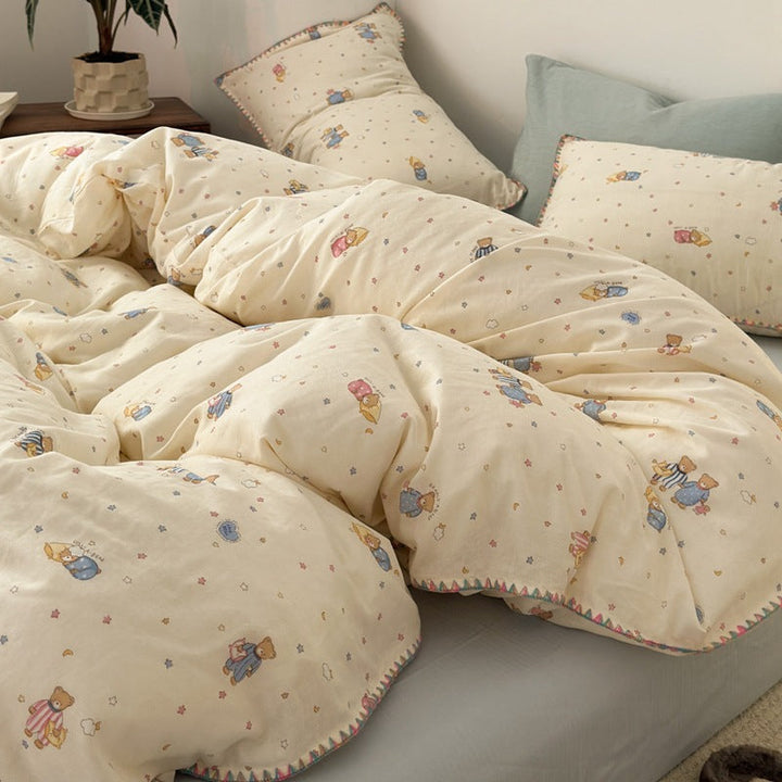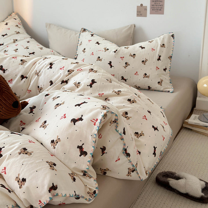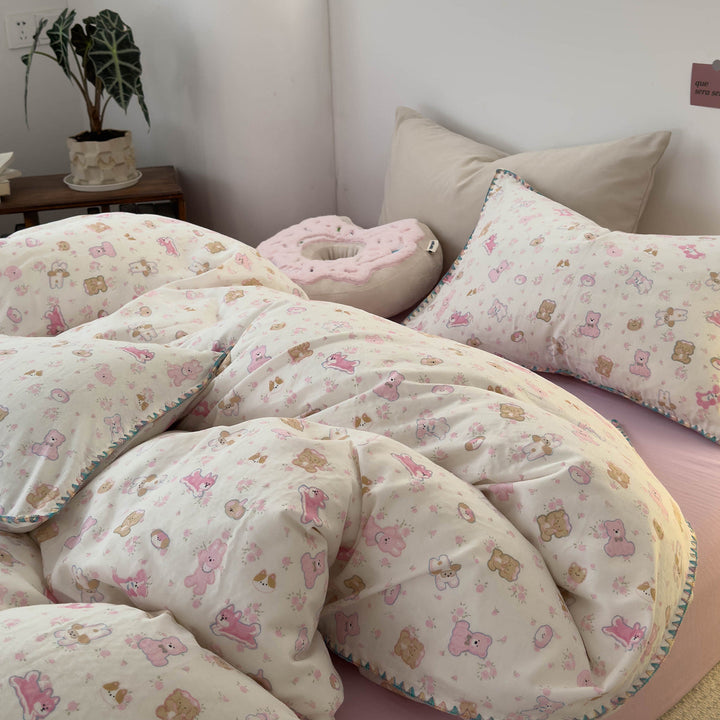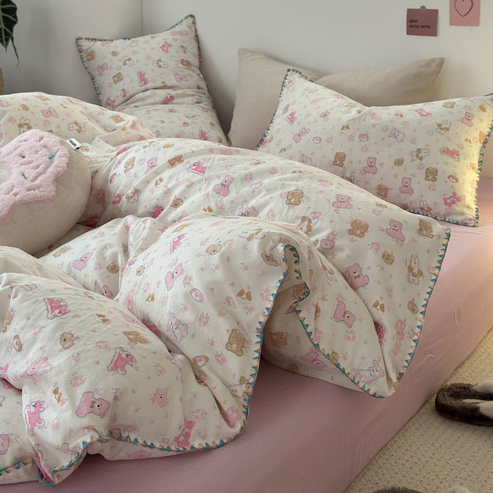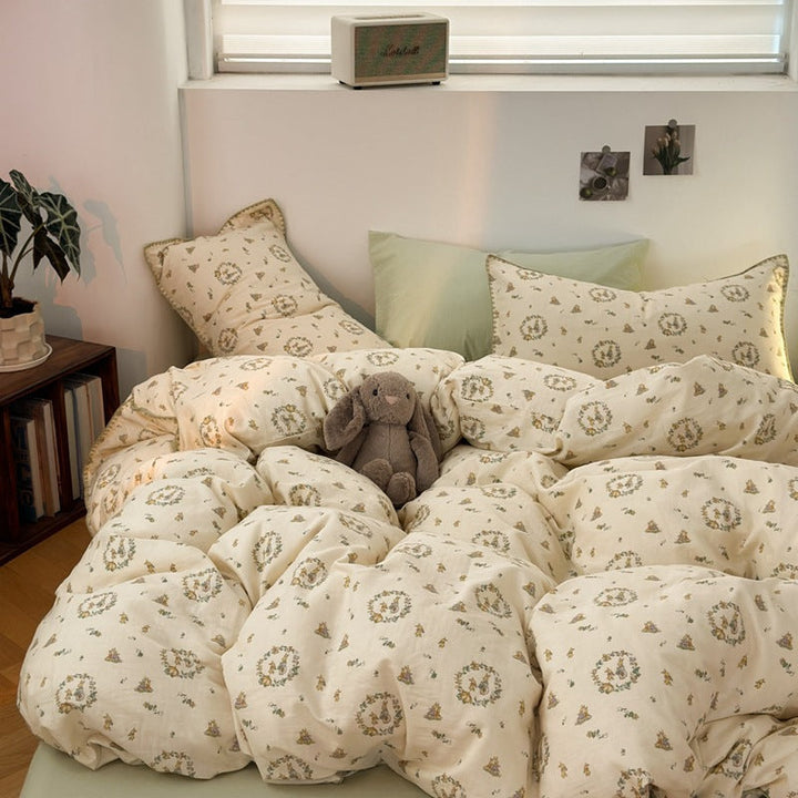 Class A ins girl's heart bunny cotton double-layer yarn pure cotton four-piece set, bed sheet quilt cover, bedding quilt cover three-piece set