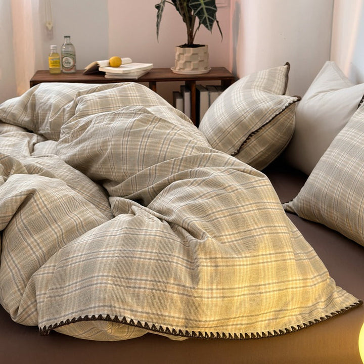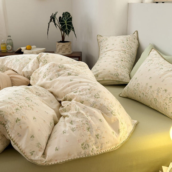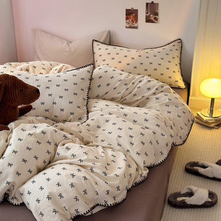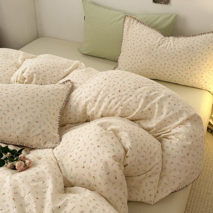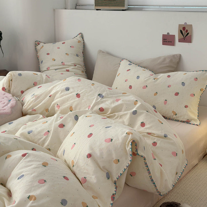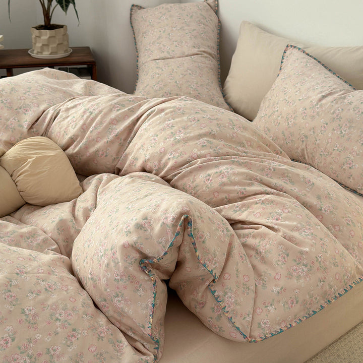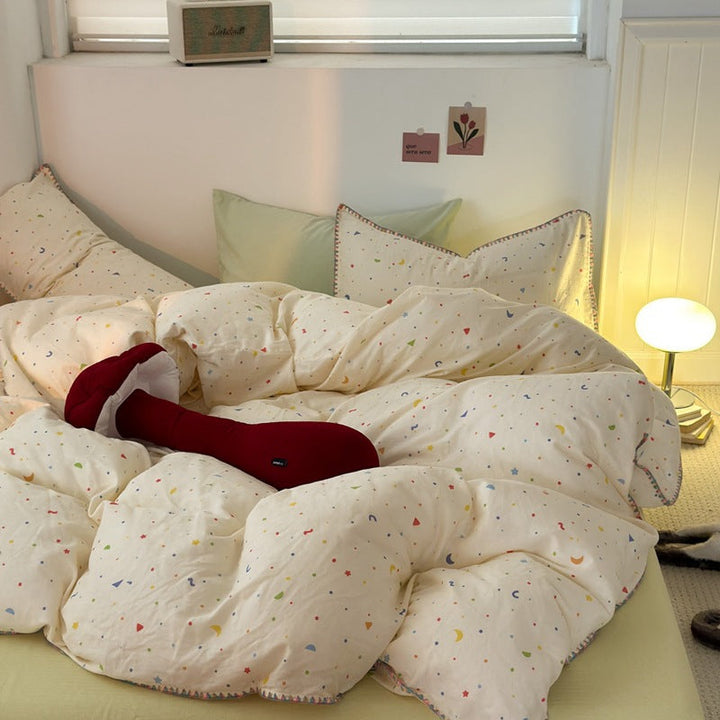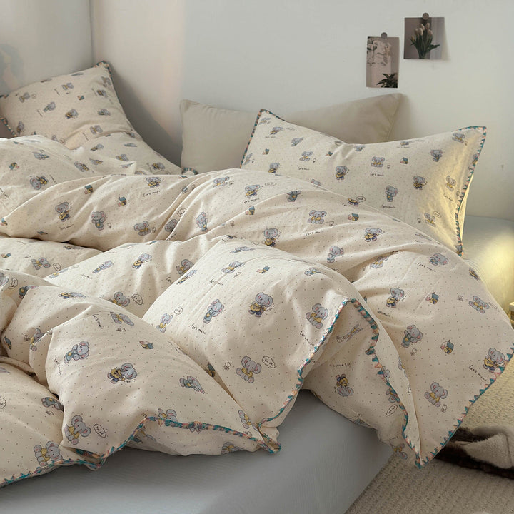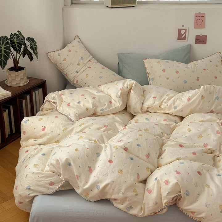 Class A ins girl's heart bunny cotton double-layer yarn pure cotton four-piece set, bed sheet quilt cover, bedding quilt cover three-piece set
