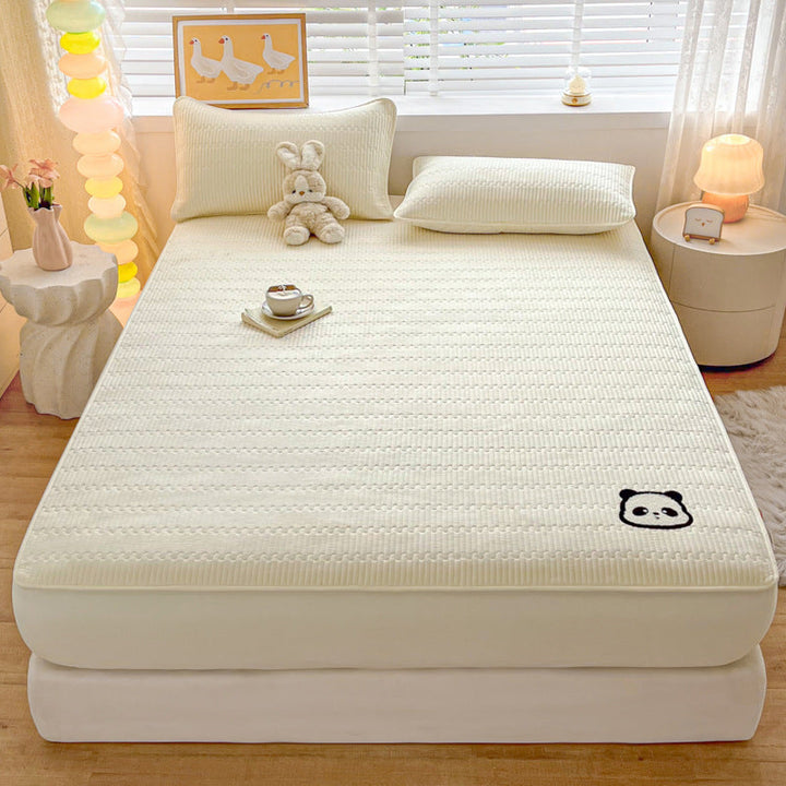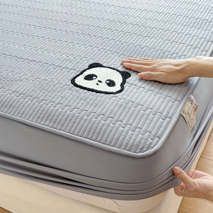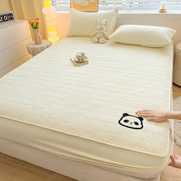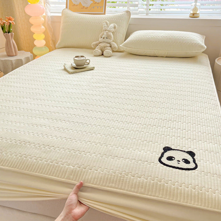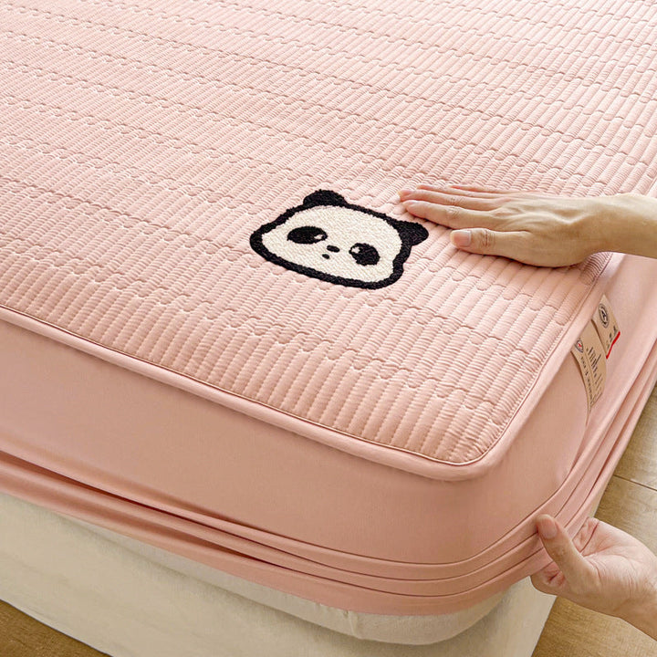 Class A panda towel embroidery antibacterial soybean padded mattress cover single piece mattress protective cover bed sheet cover household dust