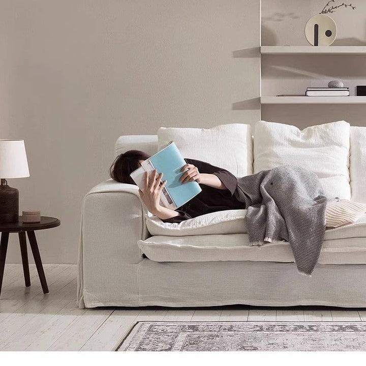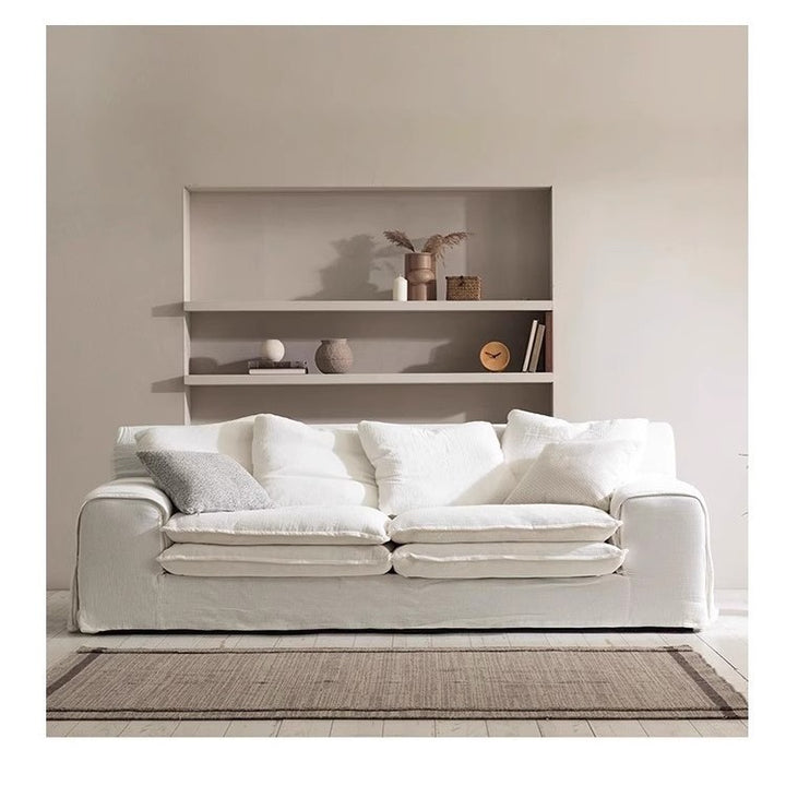 Cloud cloud sofa living room 2024 new modern simple straight row cream wabi sand wind sub-cotton and linen fabric sofa