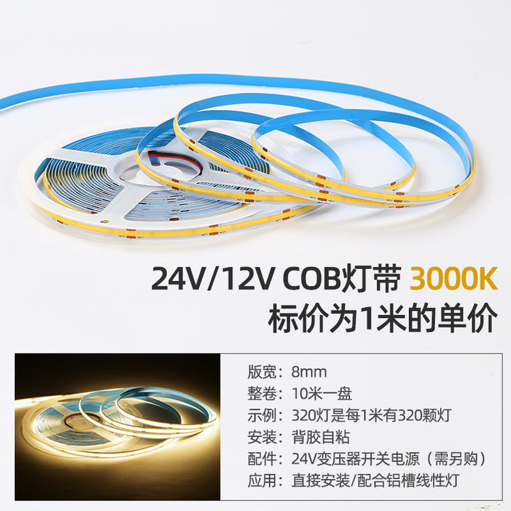 24V-COB灯带-480灯-8mm-10米/卷 |