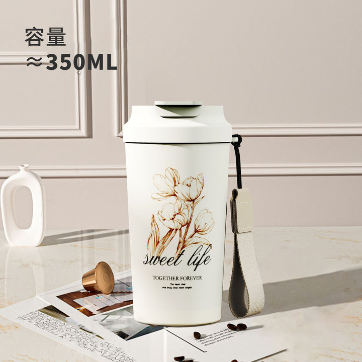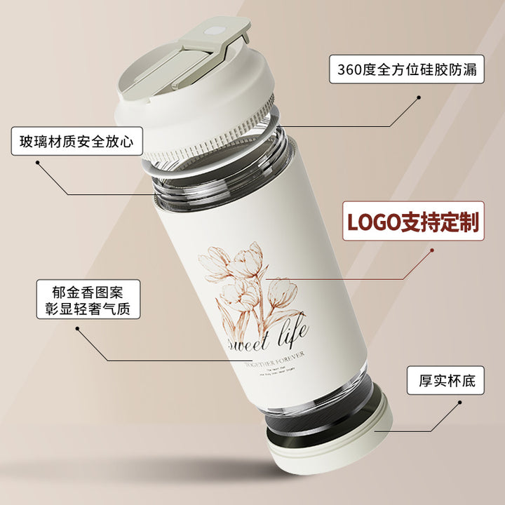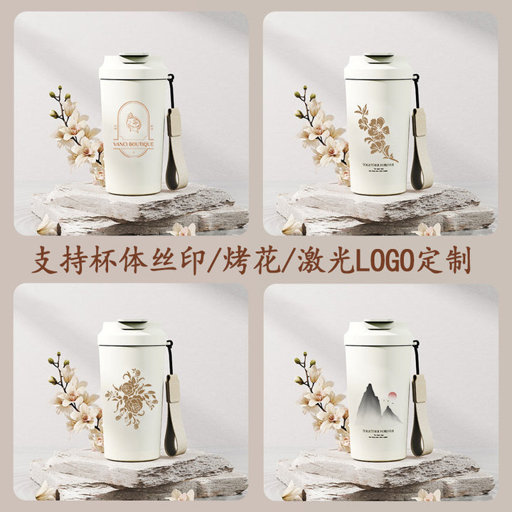Coffee cup accompanying water cup portable rope cup girls high value cup printed plastic case glass