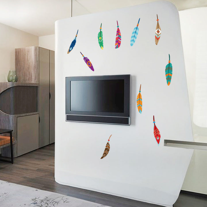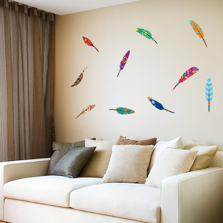 Color feather cartoon wall sticker children's room kindergarten bedroom living room background wall decorative sticker SK36009