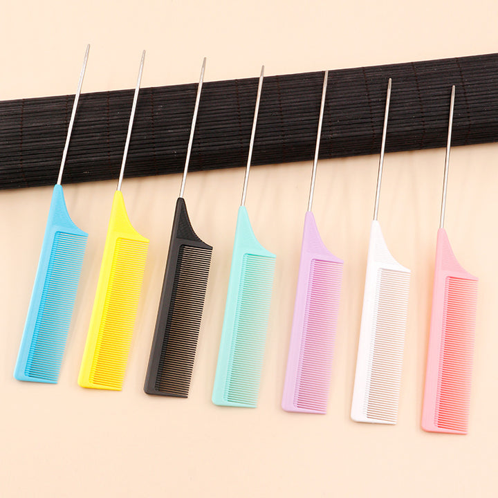 Color Steel Needle Long Tail Comb Hair Salon Special Hair Tip Tail Highlight Dyeing Comb Cut Hair Styling Section Hair Comb Rat Tail Comb