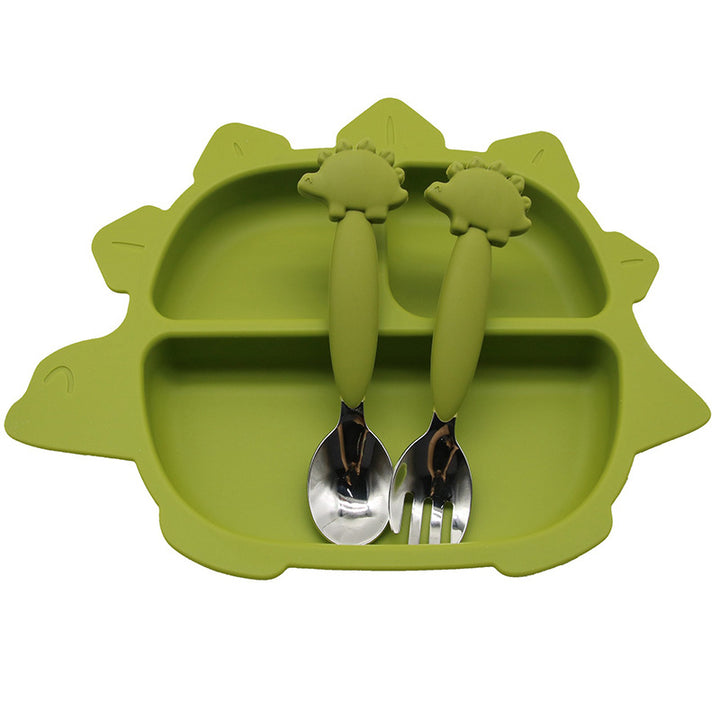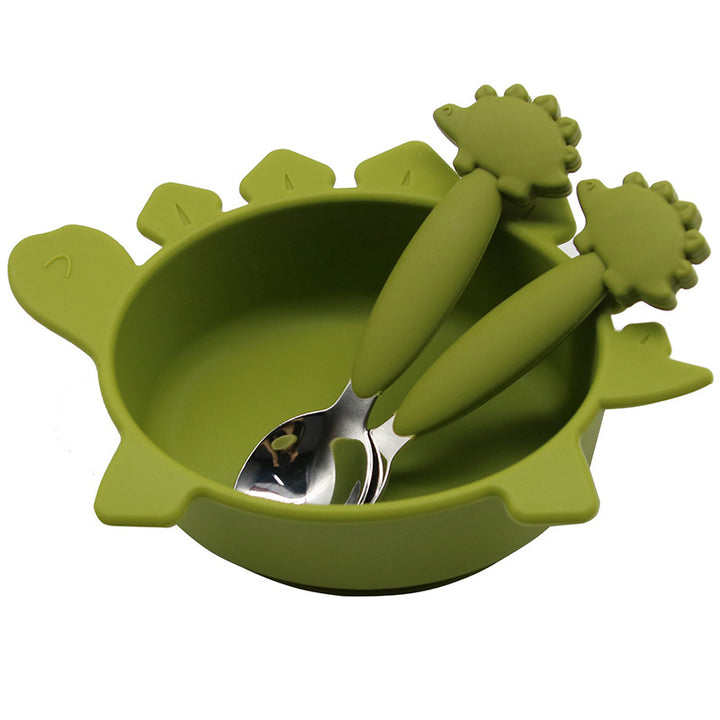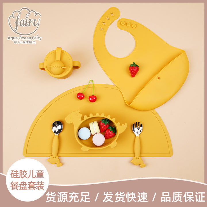 Come to the picture to customize the logo baby silicone dinosaur bowl tableware set children's complementary food bowl fork spoon bib tableware set
