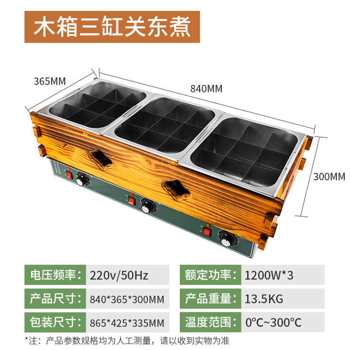 Commercial electric heating Oden cooking machine Double basin Oden cooking machine 18 grid Oden cooking pot with wooden box Convenience store ball ...