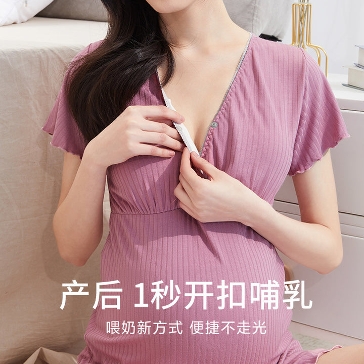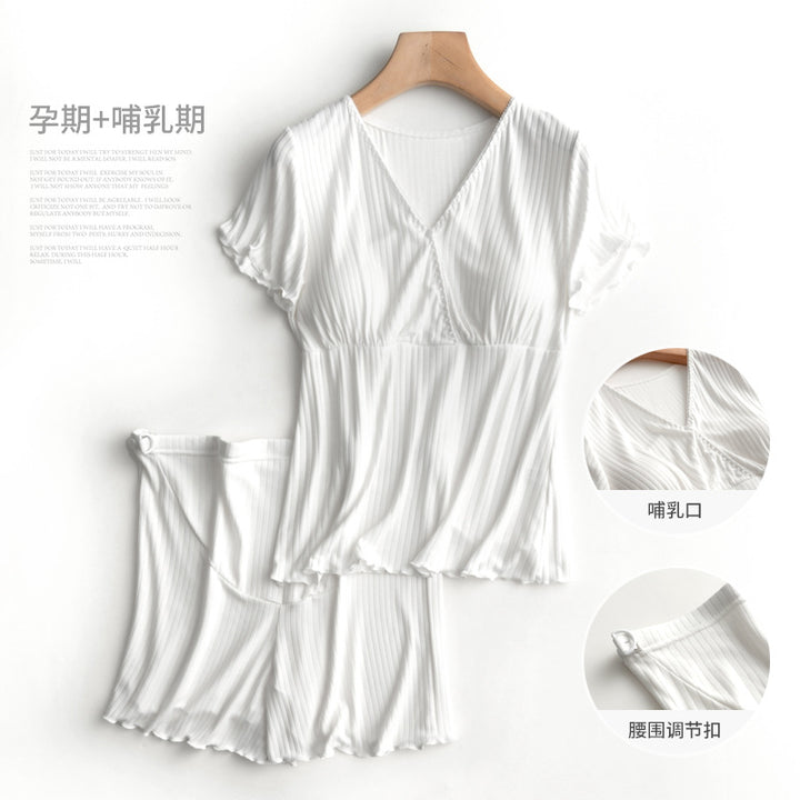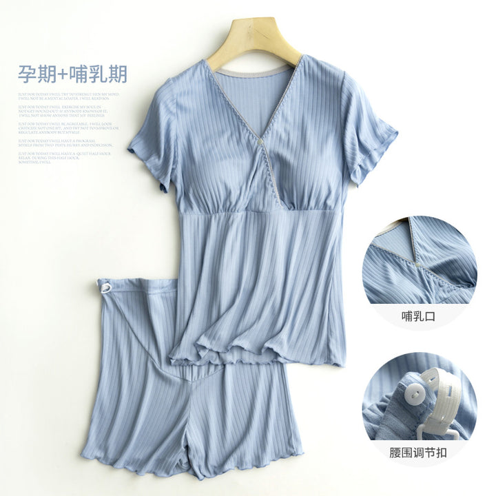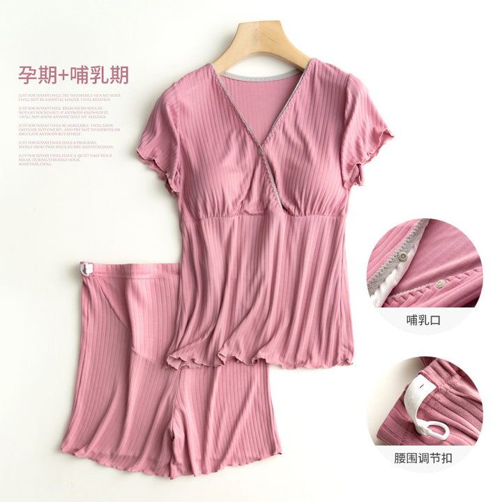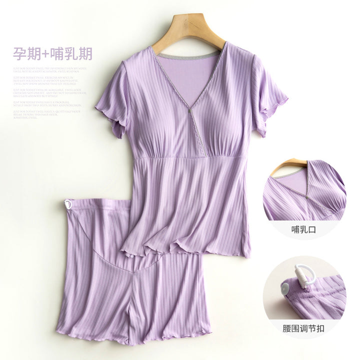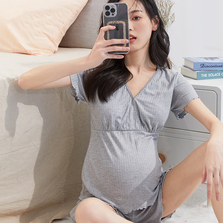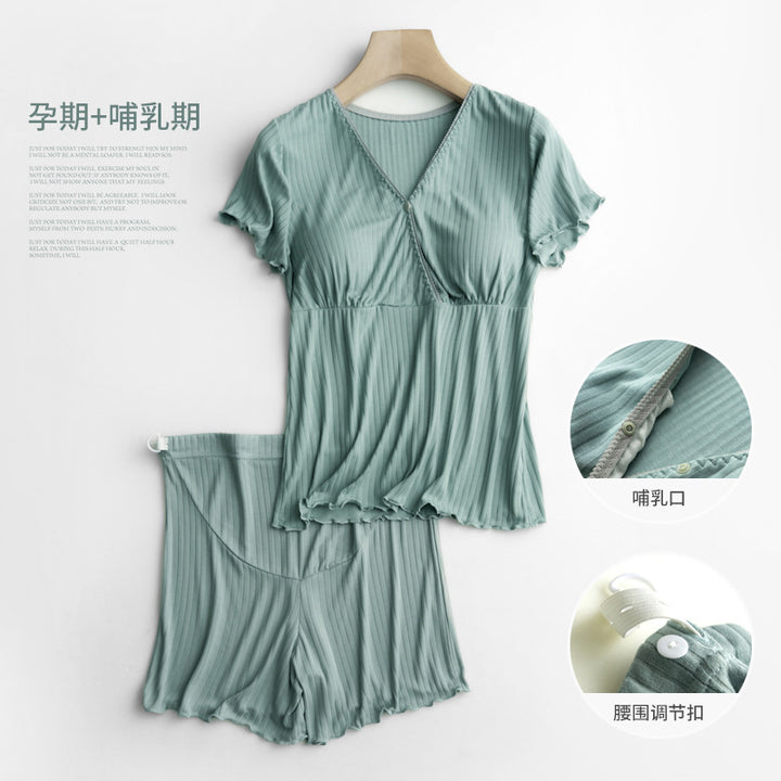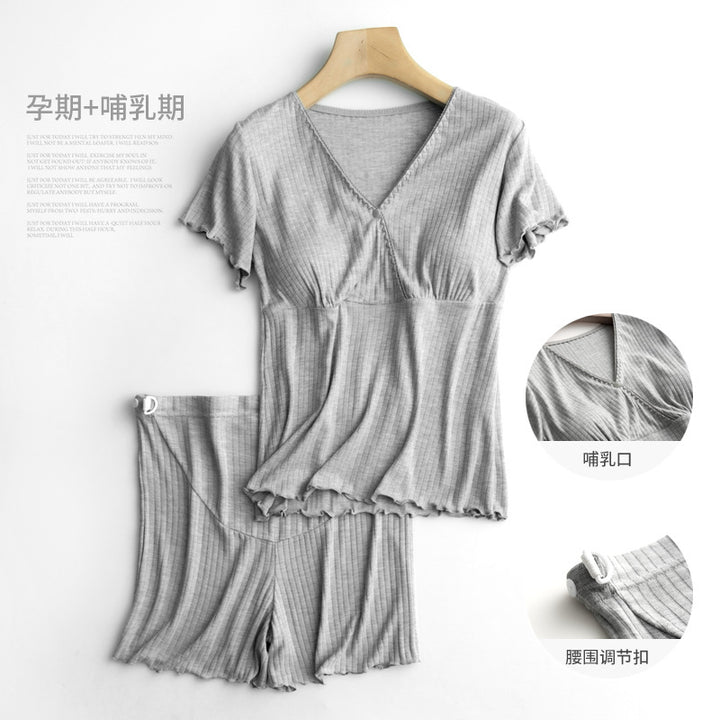 Confinement clothes, breastfeeding short-sleeved shorts set, maternity pajamas, summer thin postpartum loungewear, two-piece breastfeeding clothes.