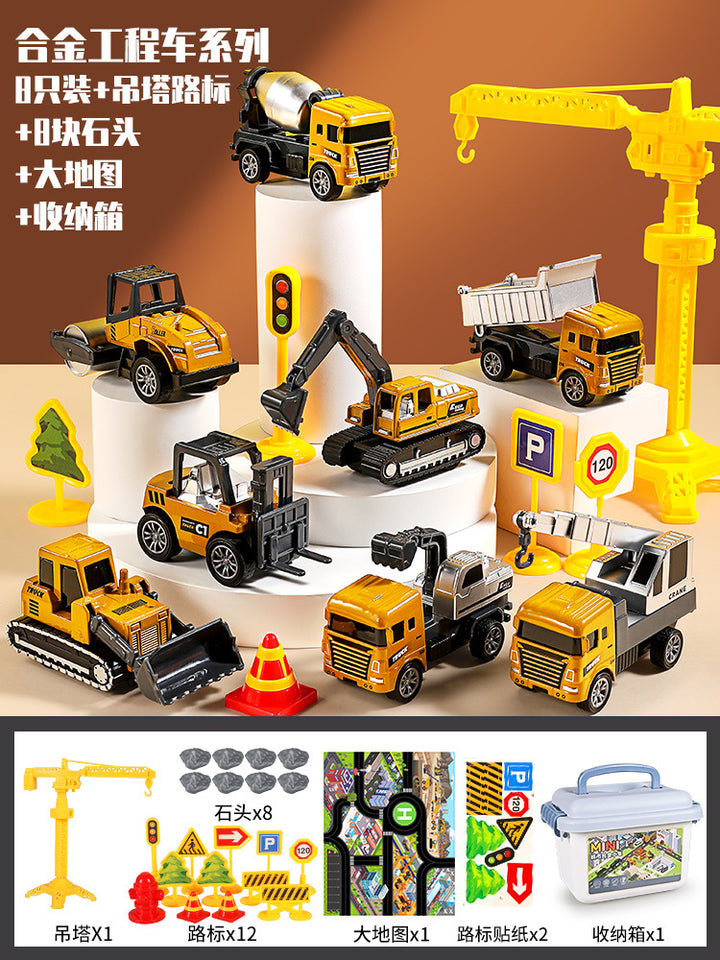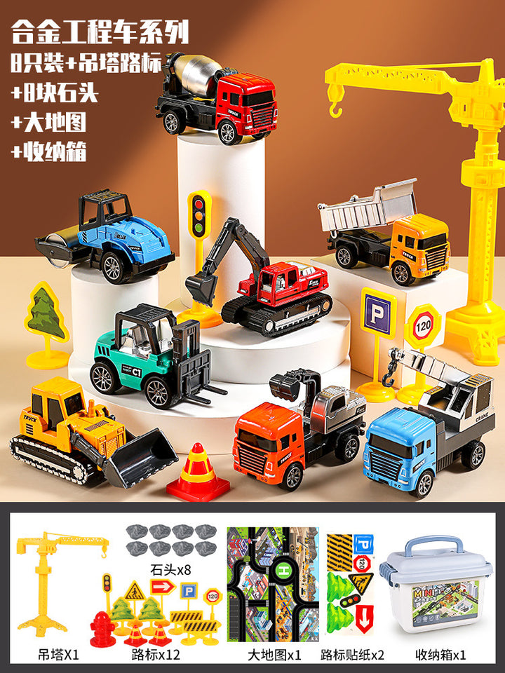 Simulation [6 cars] alloy construction vehicle set, Color [6 cars] alloy construction vehicle set, Simulation [6 cars + map + road sign] alloy construction vehicle set, Color [6 cars + map + road sign] alloy construction vehicle set, Simulation [8 cars + map + road sign + storage box] alloy construction vehicle set, Color [8 cars + map + road sign + storage box] alloy construction vehicle set, Simulation large [2 cars] construction vehicle set (some alloys/joints are movable), Simulation large [3 cars] construction vehicle set (some alloys/joints are movable), Simulation large [5 cars] construction vehicle set (some alloys/joints are movable), Simulation large [6 cars] construction vehicle set (some alloys/joints are movable), Supercar series [8 cars] alloy car set, Supercar series [8 cars + road sign + storage box] alloy car set, Supercar series [12 cars + road signs + map + storage box] alloy car set, City Service Vehicle Series [6 Cars + Road Signs] Alloy Car Set, [52 cars + storage box] Racing set, [72 cars + storage box] Racing set |