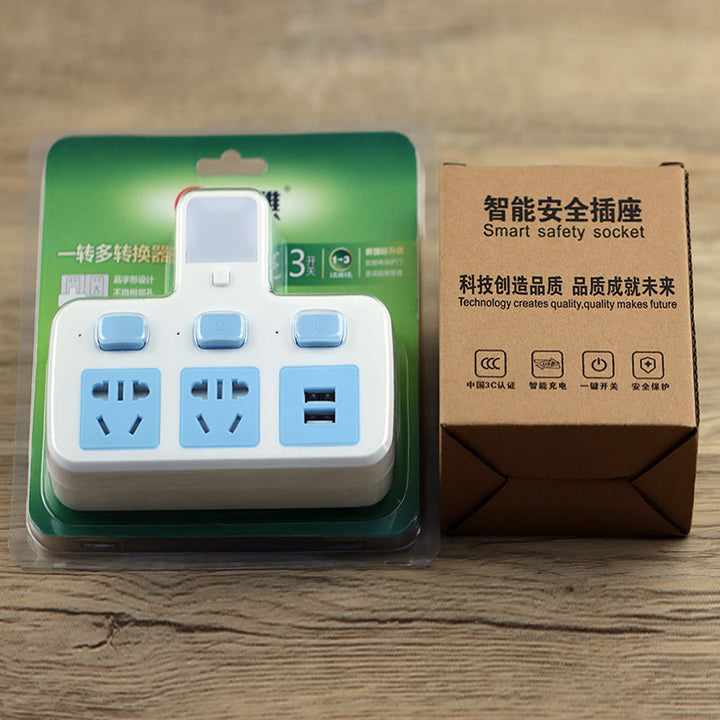 Conversion socket usb socket household one turn multi-hole switch power strip multi-function wireless plug-in board with night light