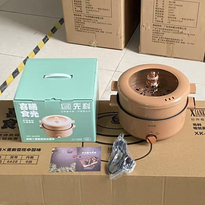 Cooking electric pot Portable electric hot pot Multifunctional electric heating pot Household accommodation Cooking pot Soup Steaming noodles Cooki...