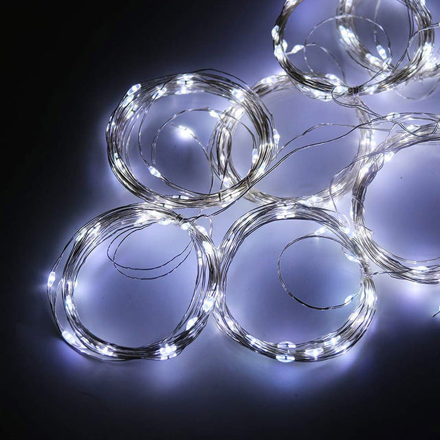 Copper curtain lights, solar led copper wire lights string Christmas decoration warm lights birthday party atmosphere fairy lights