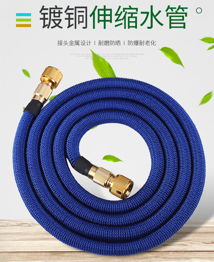 Copper-plated household garden water pipe 3x telescopic TPE car wash water pipe magic telescopic water pipe water gun accessories