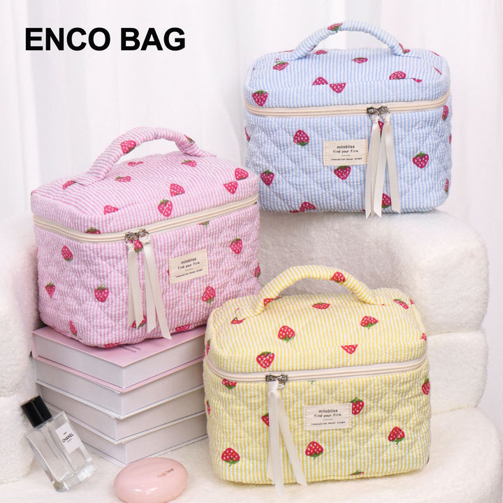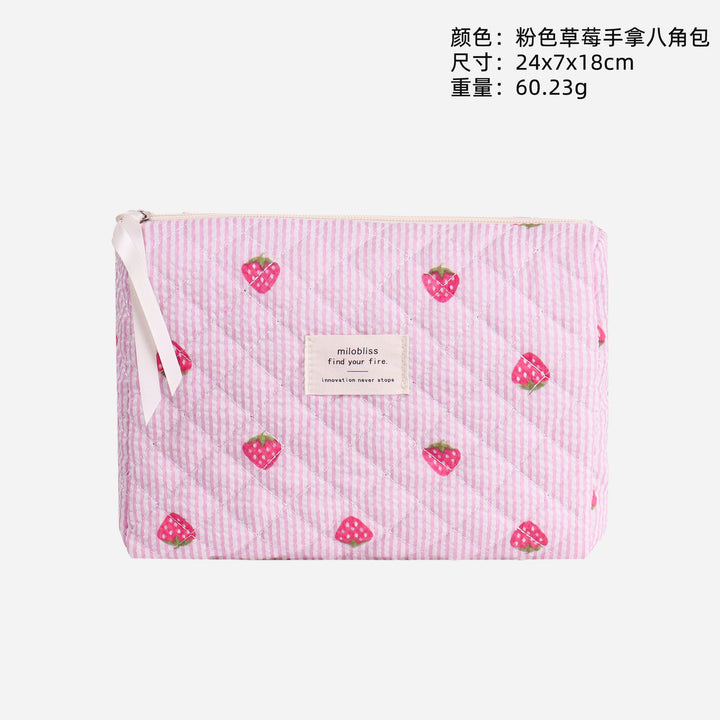 Cosmetic bag New quilted strawberry candy color storage bag Large capacity cosmetics Portable cute clutch bag