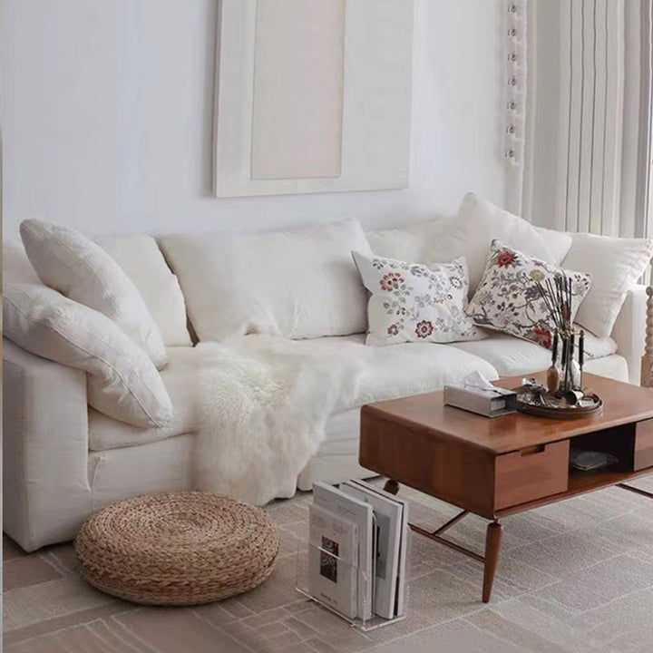 Cotton and linen fabric multi-person sofa small apartment modern simple living room cream style Nordic down floor sofa