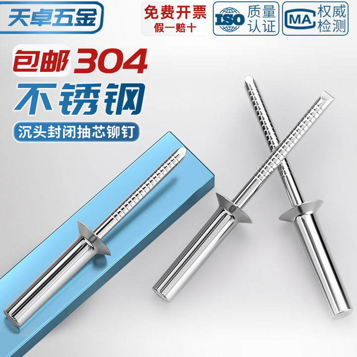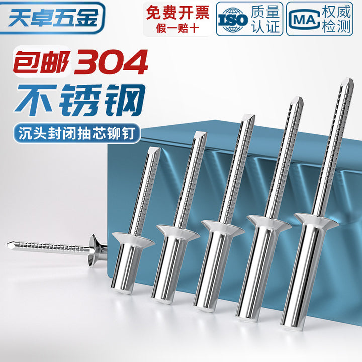 Countersunk head closed blind rivet 304 stainless steel closed pull nail closed waterproof M3.2M4M4.8mm