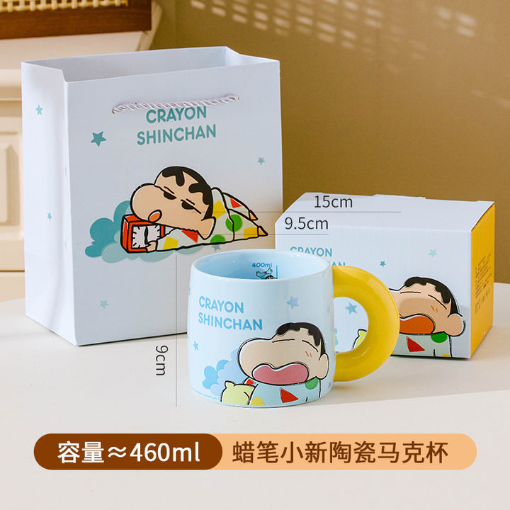 Crayon small new ceramic mug household graduated cup large capacity drinking cup coffee cup ceramic cup holiday gift