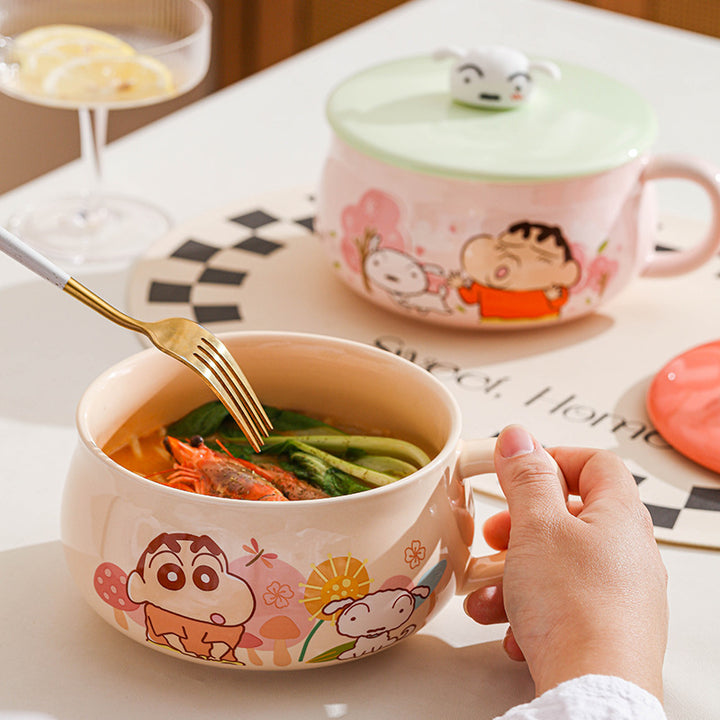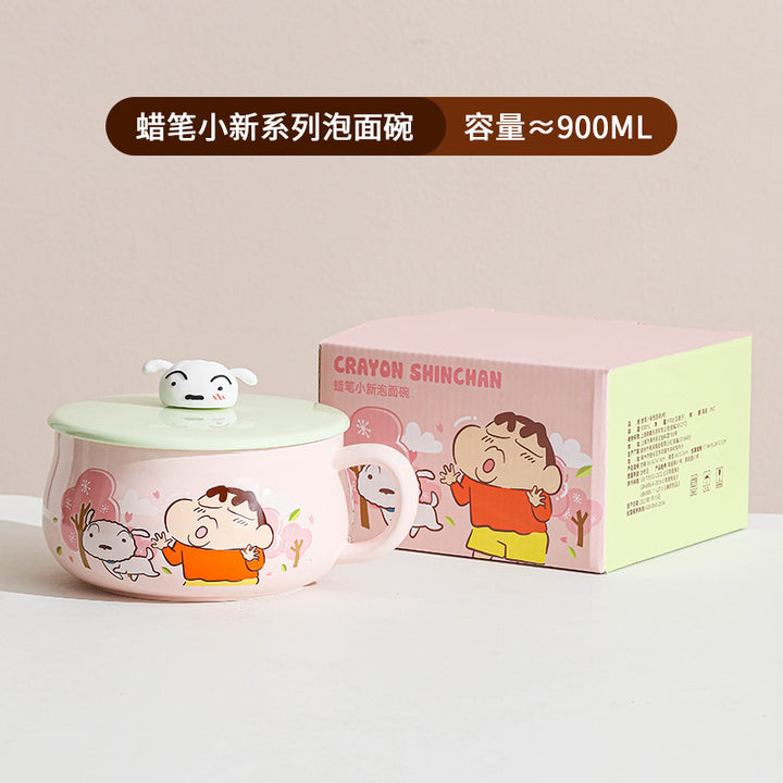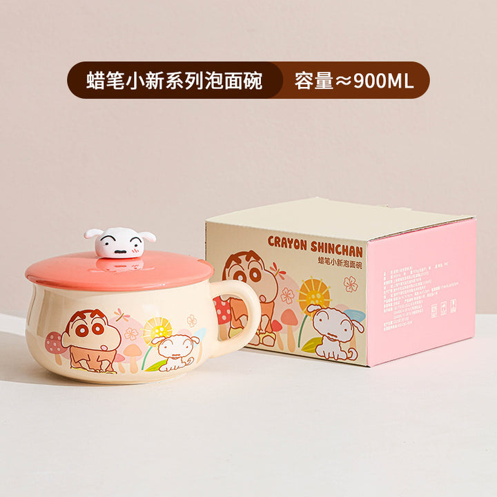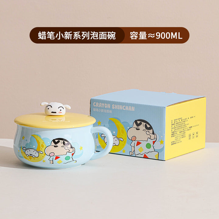 Crayon Xiaoxin Instant Noodles Bowl Cartoon Ceramic Bowl with Lid and Handle Large Capacity B...