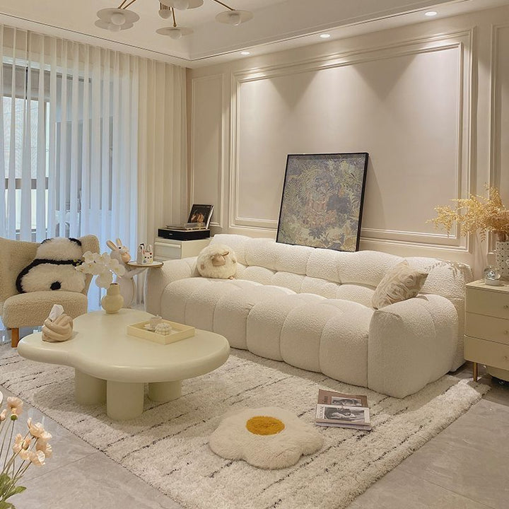 Cream style fabric sofa living room small apartment home leisure simple modern double three Internet celebrity marshmallow sofa