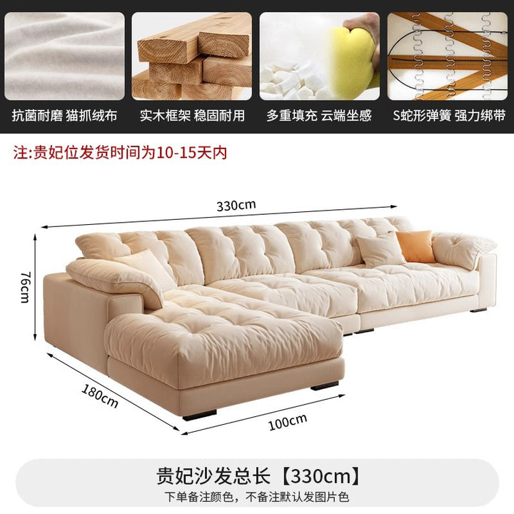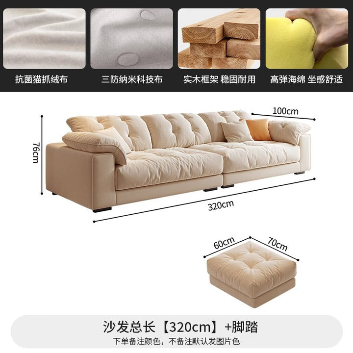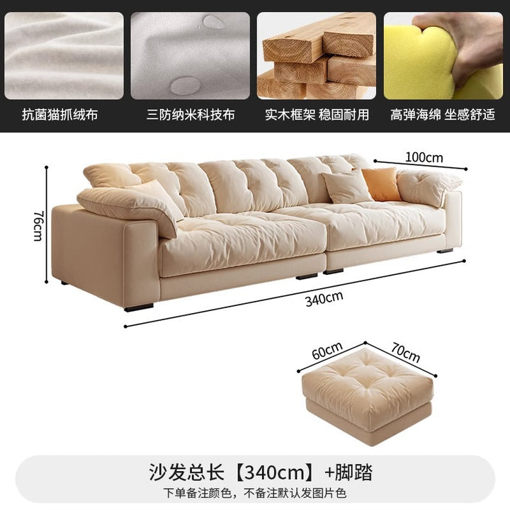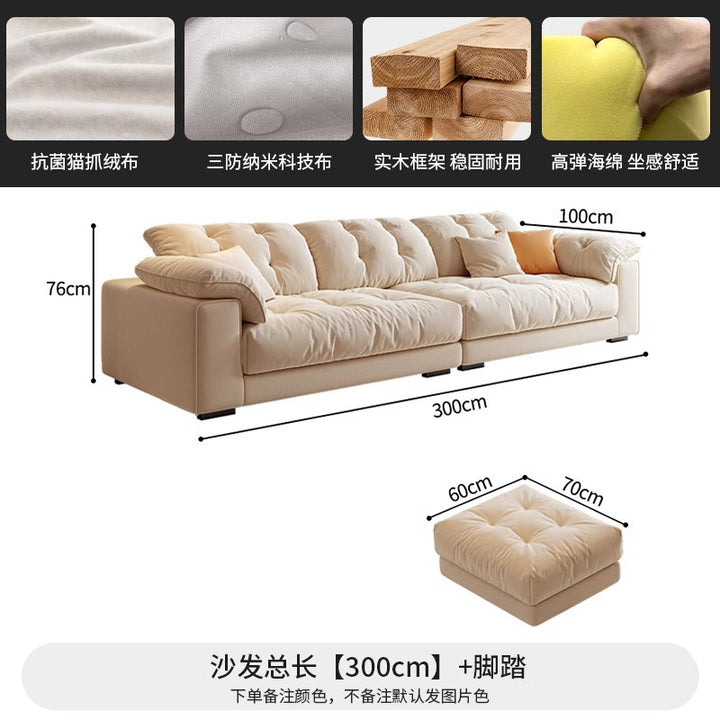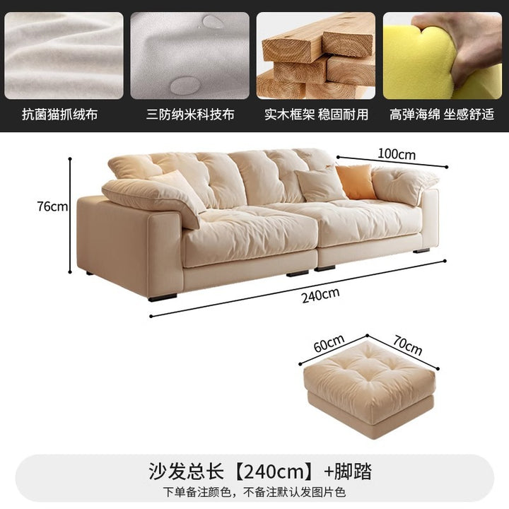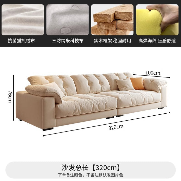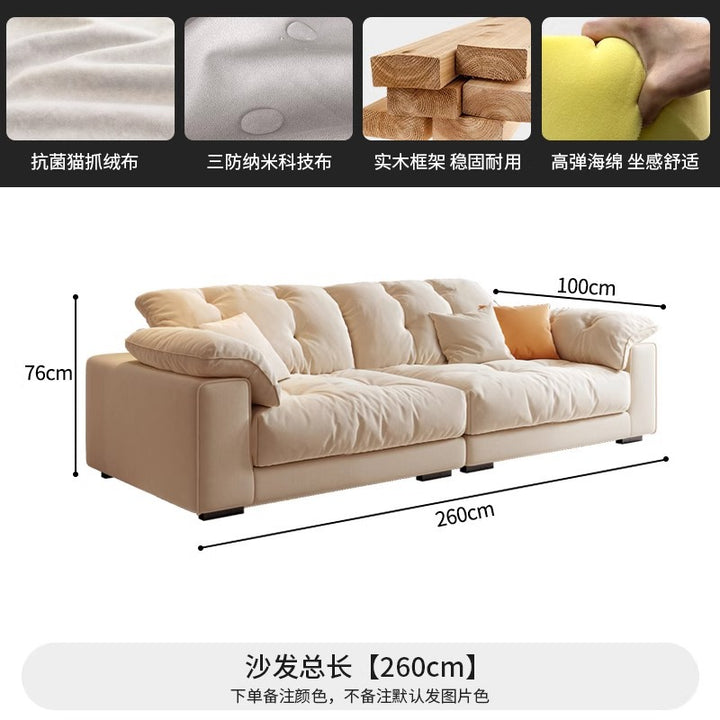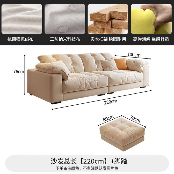 Cream style fabric sofa living room small apartment simple modern light luxury technology cloth straight row household cloud sofa