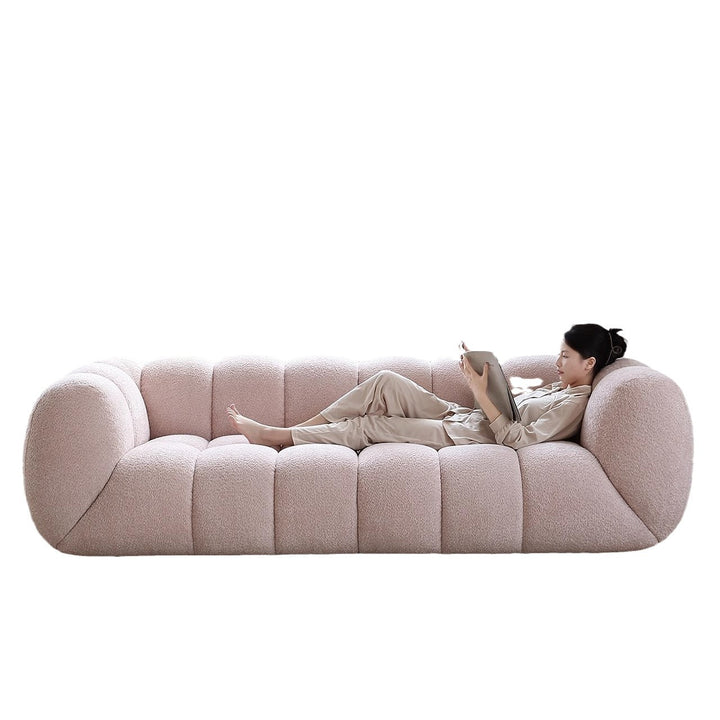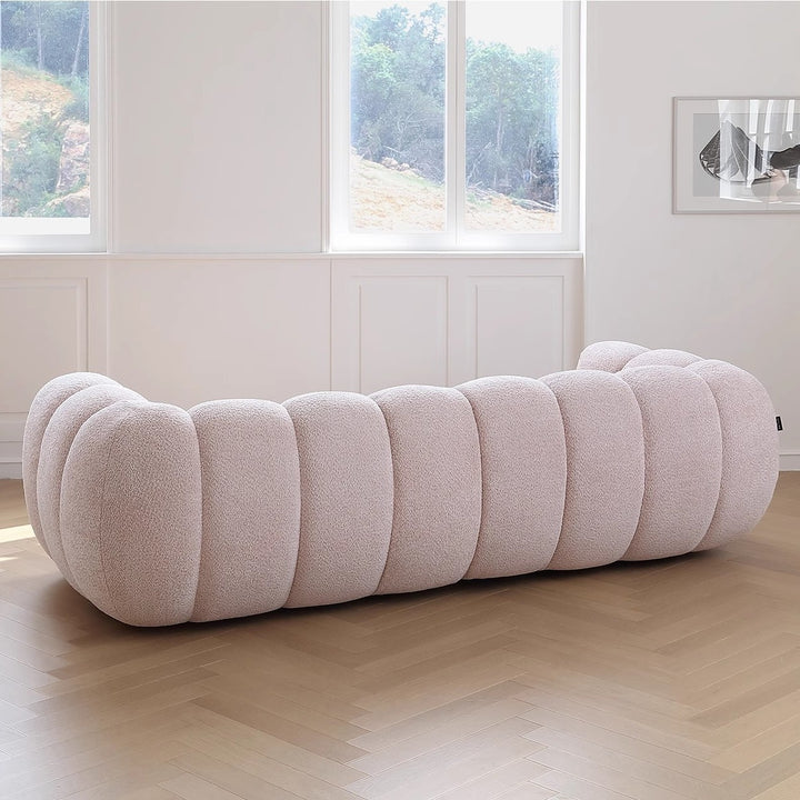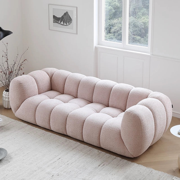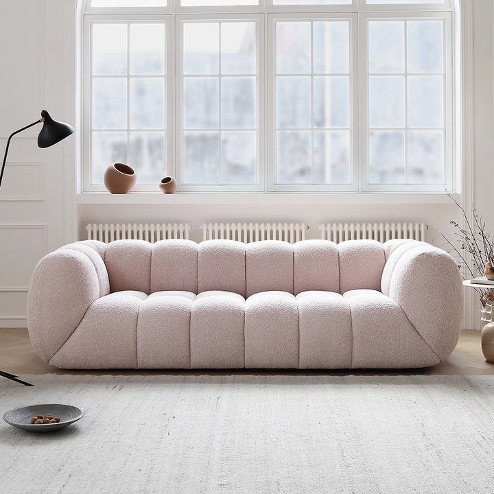 Cream style fabric sofa straight row small apartment French living room Nordic simple modern technology cat scratch flannel puffs