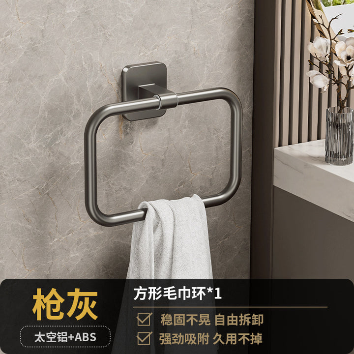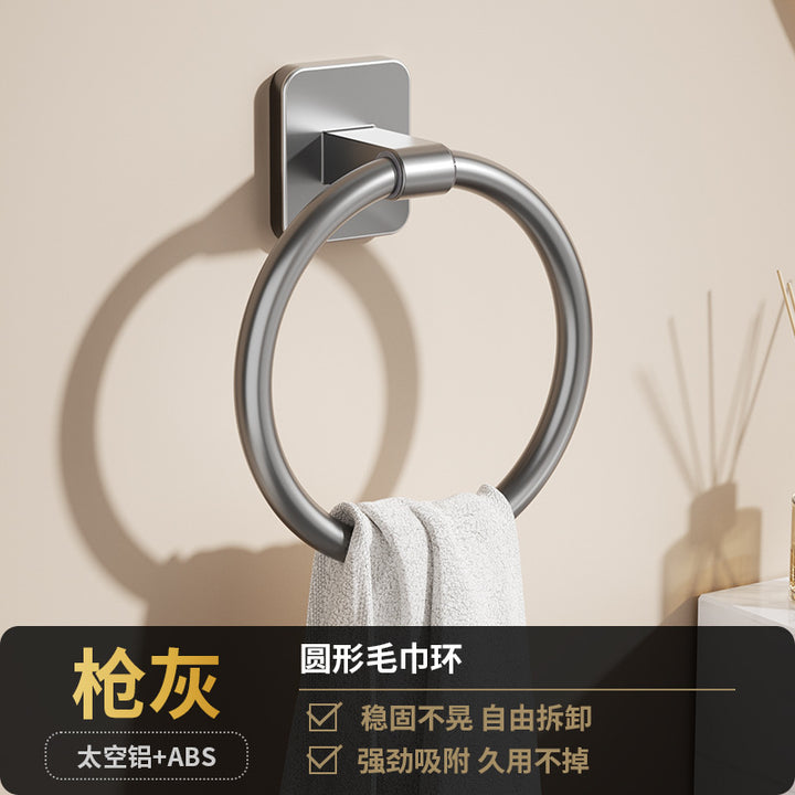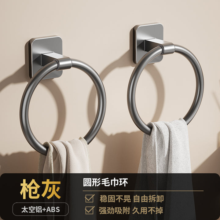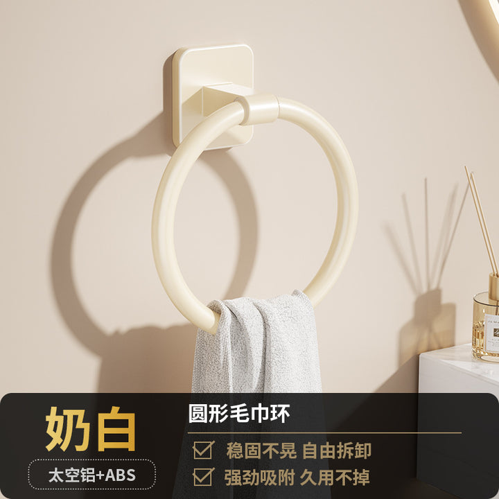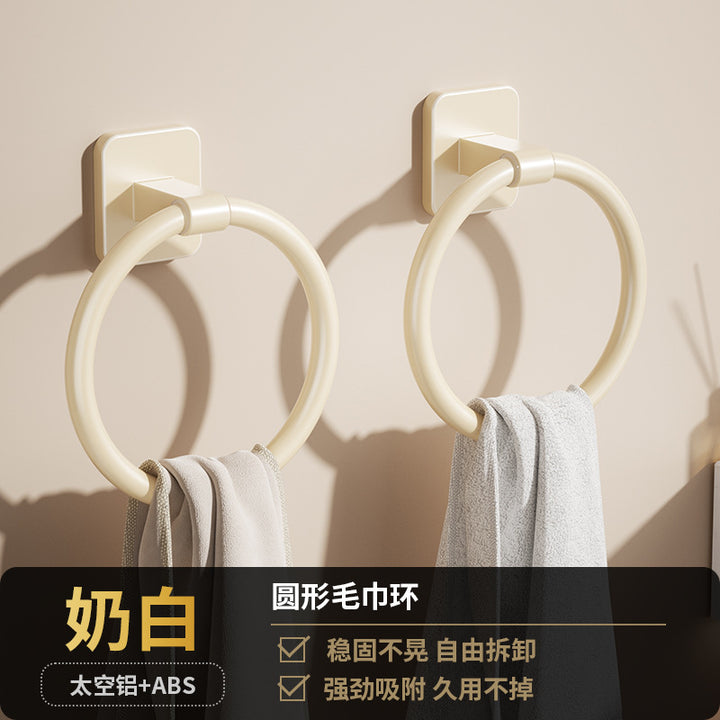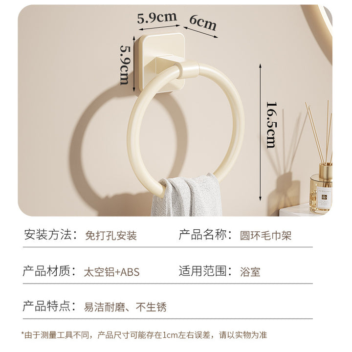 Cream White Bathroom Towel Rack Space Aluminum Towel Ring Toilet Hand Towel Ring Wash Table Wall Hanging Round Hanging Ring