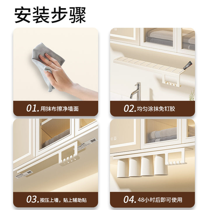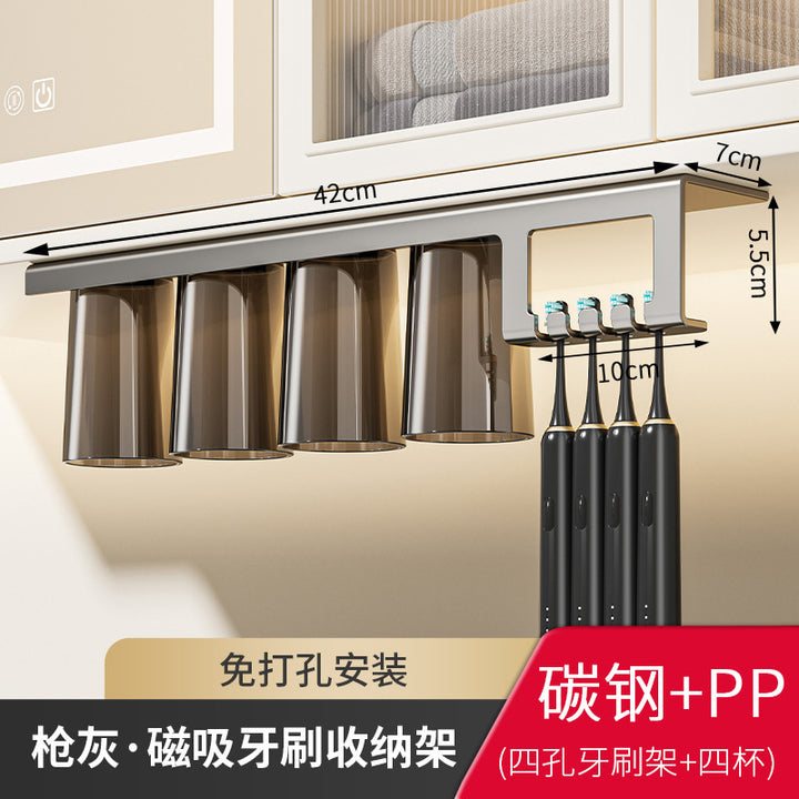 Cream white mirror cabinet bottom magnetic mouthwash cup upside down wall-mounted advanced feeling bathroom wall-mounted toothbrush rack