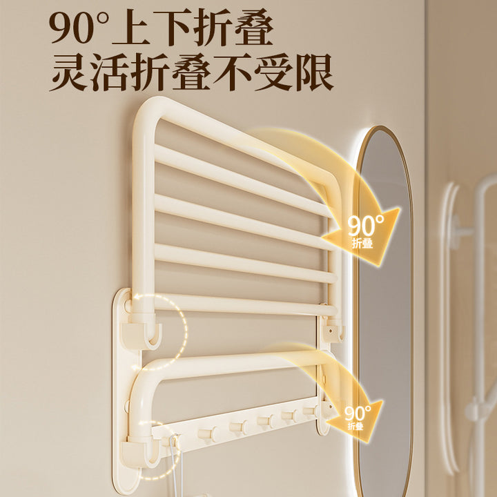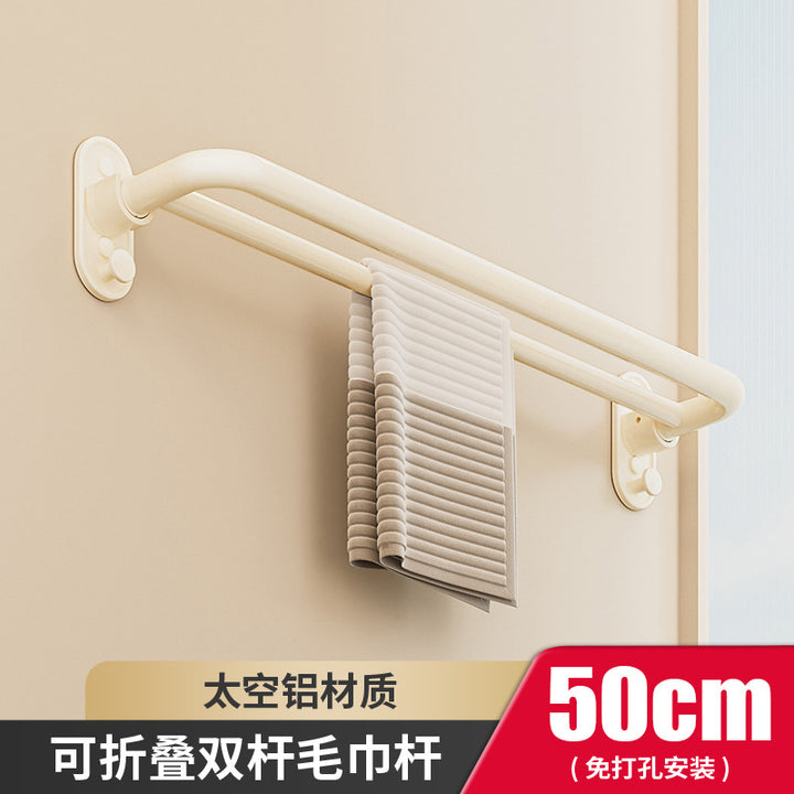 Cream White Toilet Folding Bath Towel Shelf Bathroom Toilet Pendant Set Towel Rack Space + No Punching