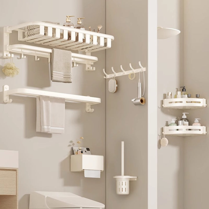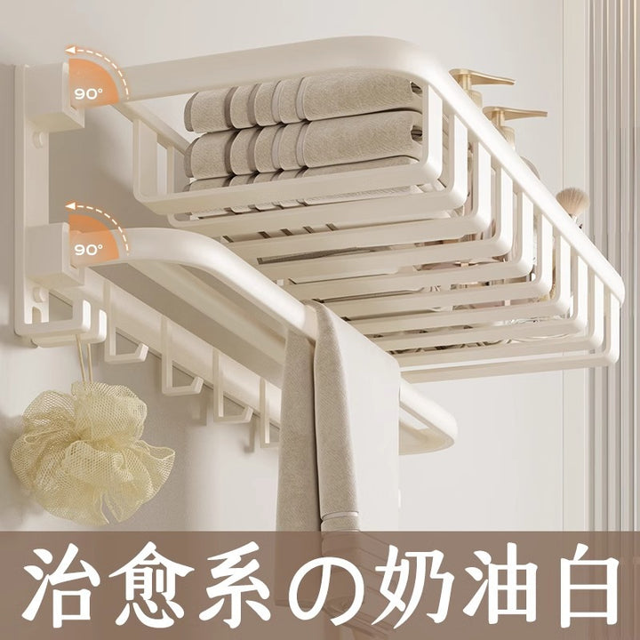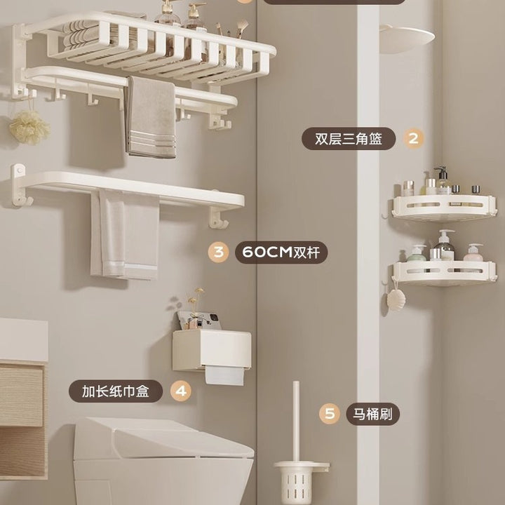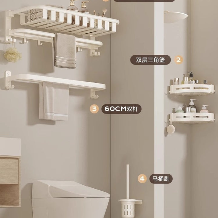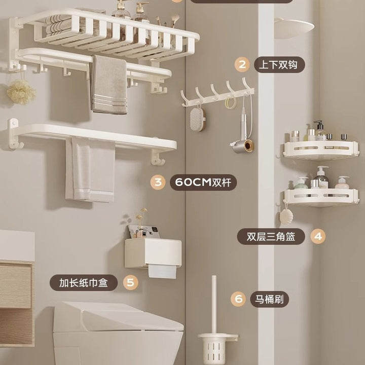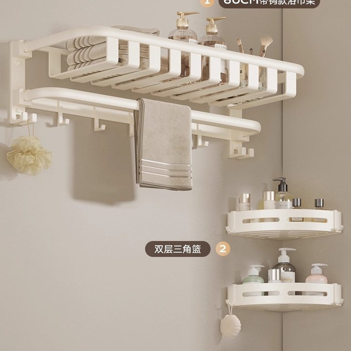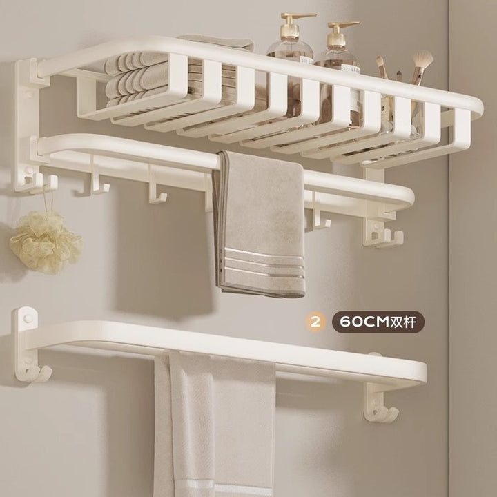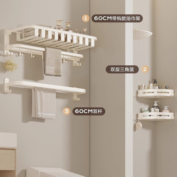 Cream white towel rack No punching bathroom rack Toilet space aluminum pendant Integrated wall hanging bath towel rack