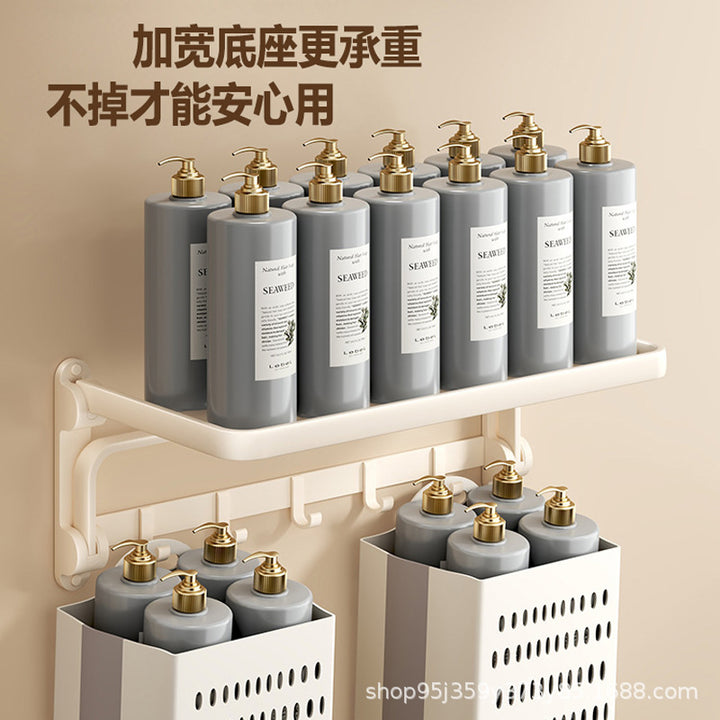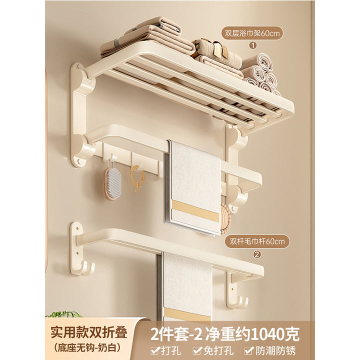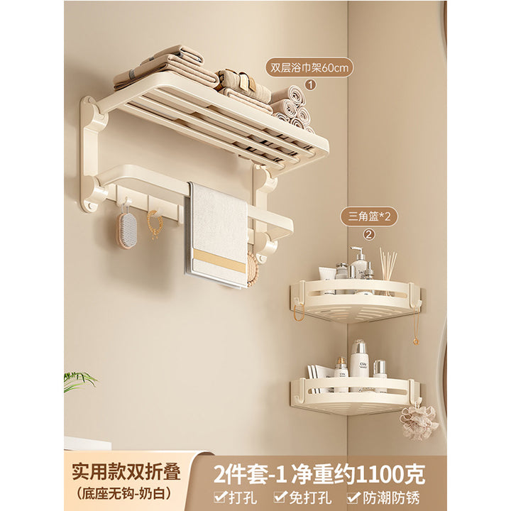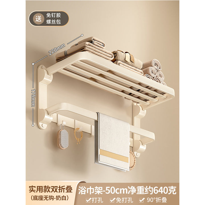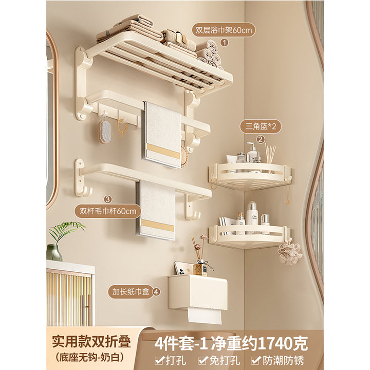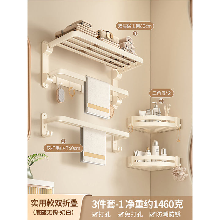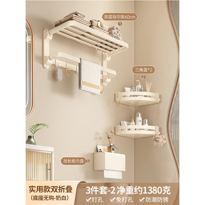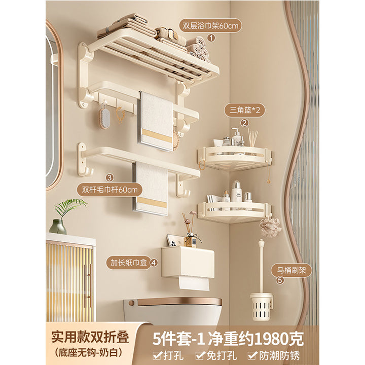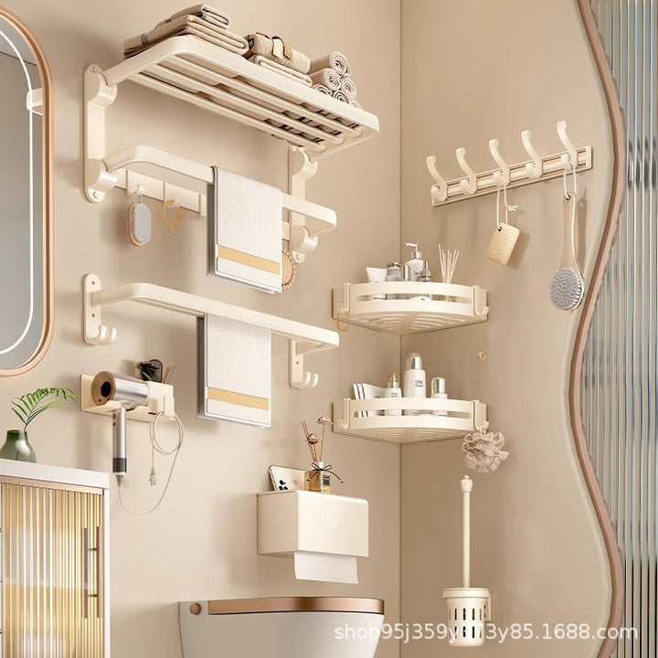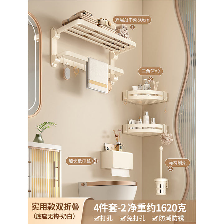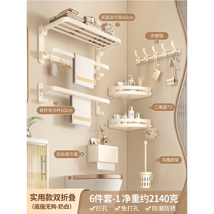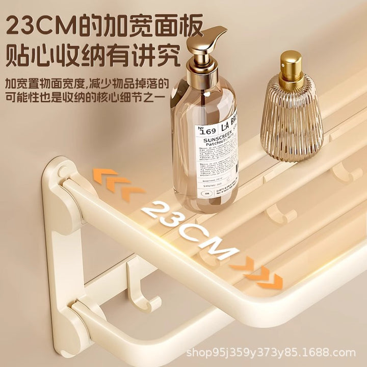 Cream White Wall Hanging Toilet Space Aluminum Bath Towel Rack No Punching Bathroom Shelf Toilet Toilet Towel Rack