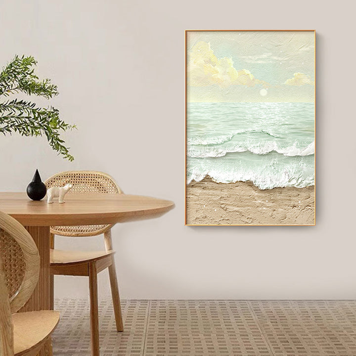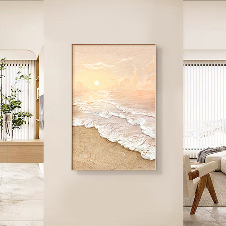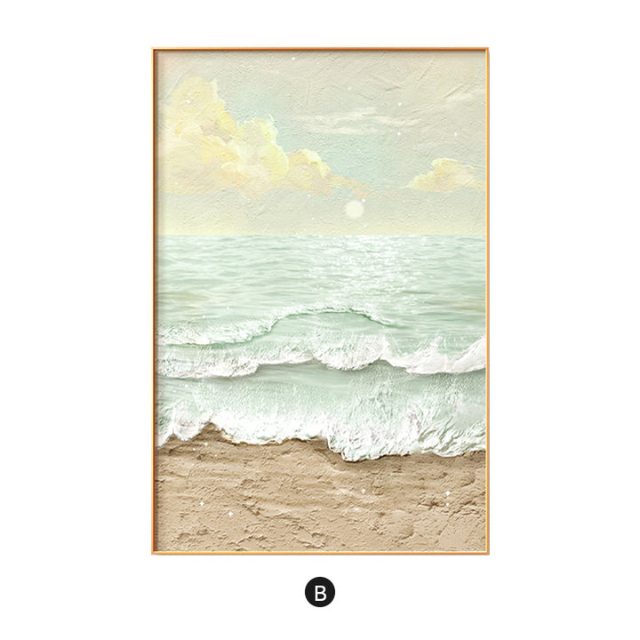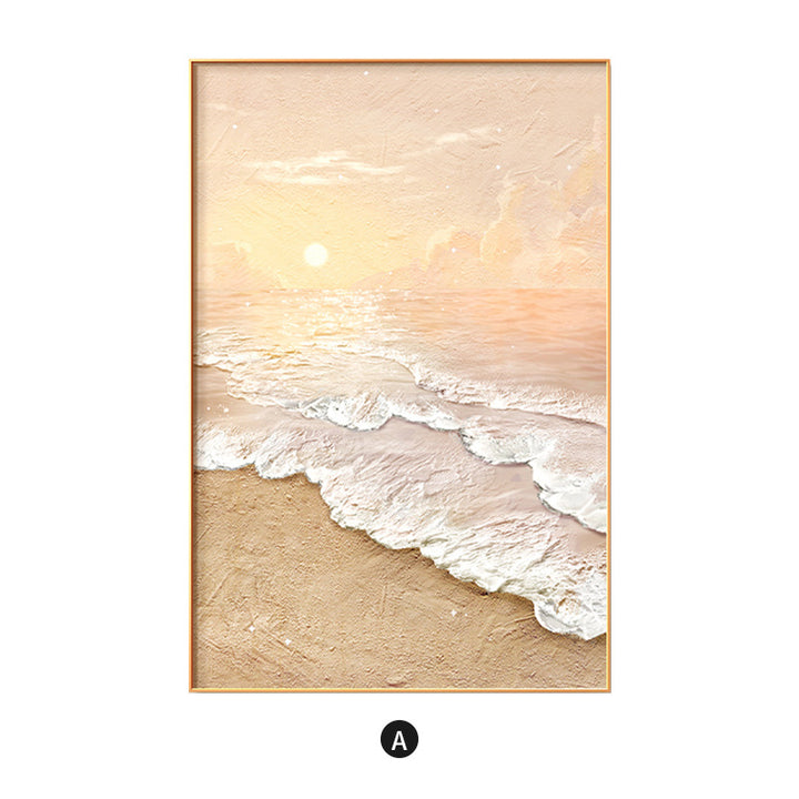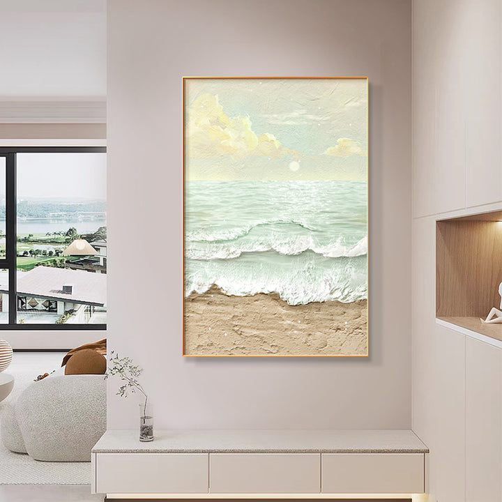 Cream wind abstract sofa background wall decorative painting, entrance painting, mural, sea waves falling sharply, living room art hanging painting
