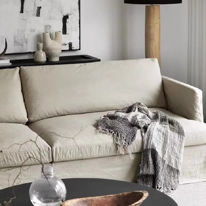 Cream Wind Small Apartment Detachable Sofa Living Room Wabi Wind Straight Row Three-person B & B Hotel Fabric Sofa