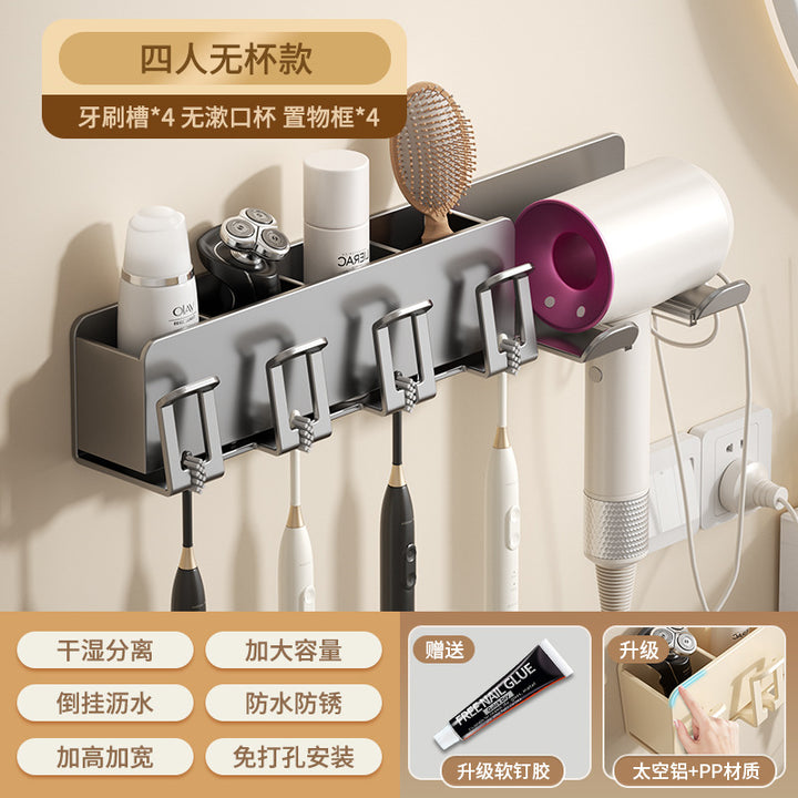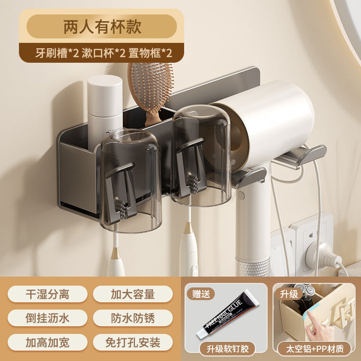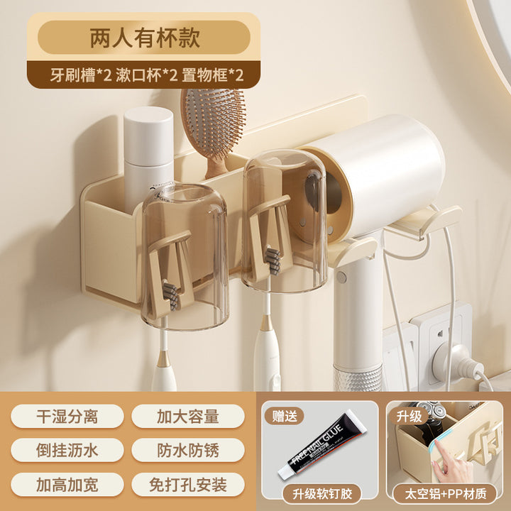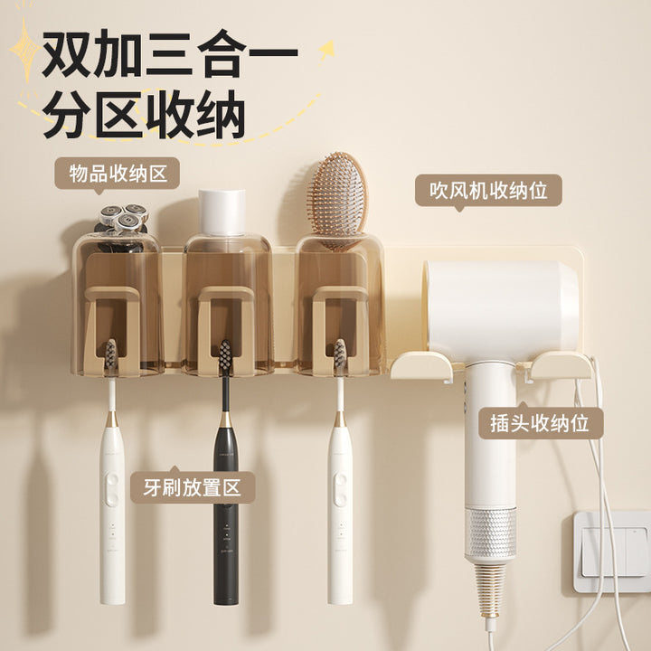 Cream wind toothbrush shelf No punching, bathroom wall wall-mounted electric tooth cup, mouthwash cup, hair dryer shelf
