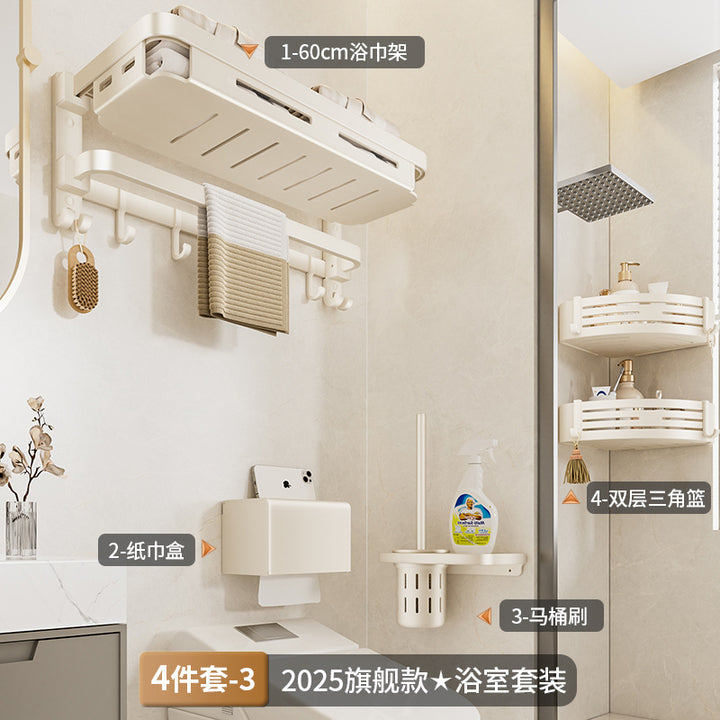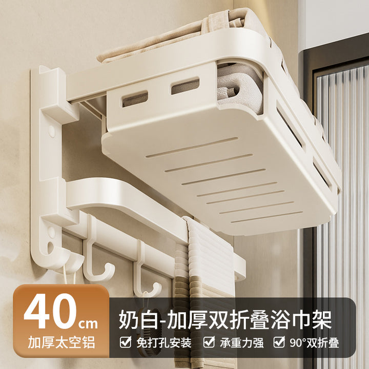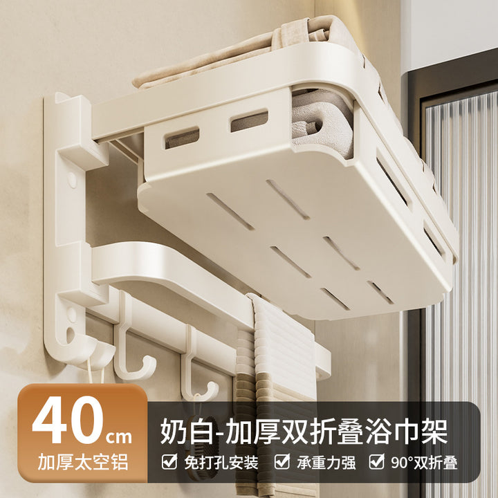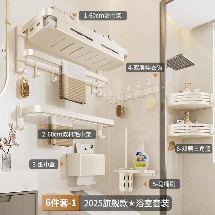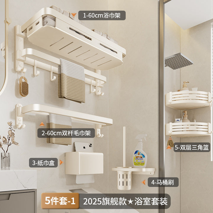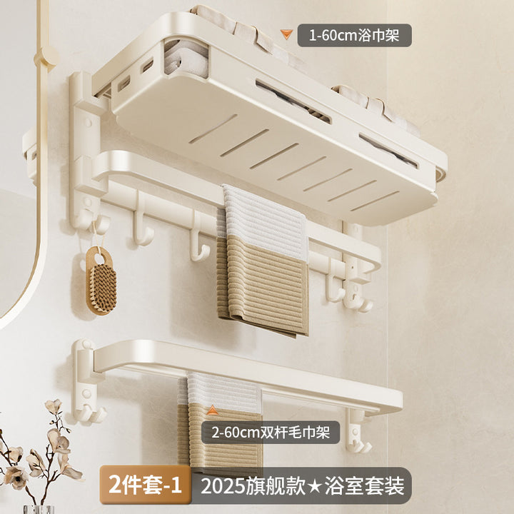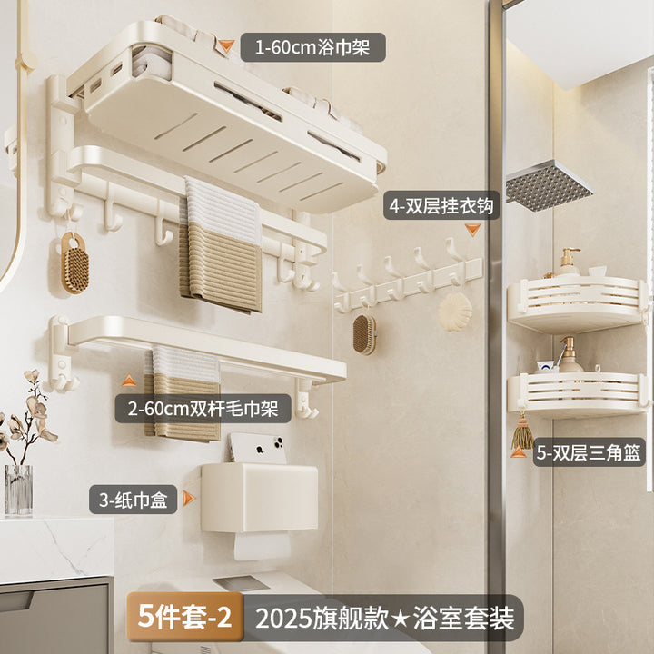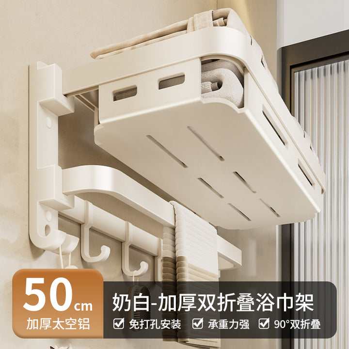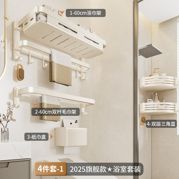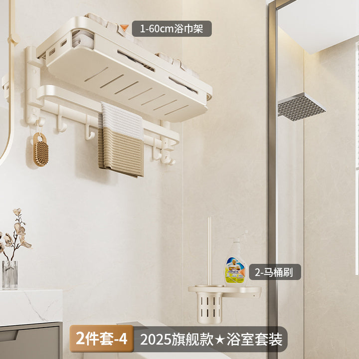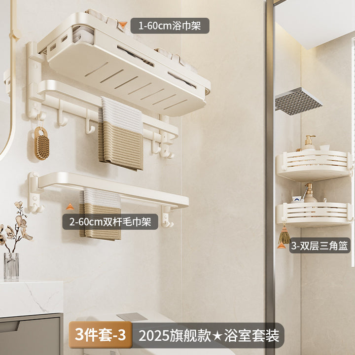 Cream wind towel rack No punching bathroom rack Toilet space aluminum pendant Integrated wall hanging bath towel rack