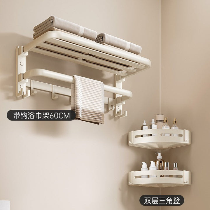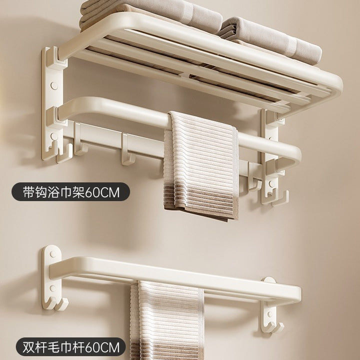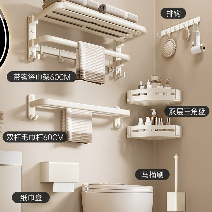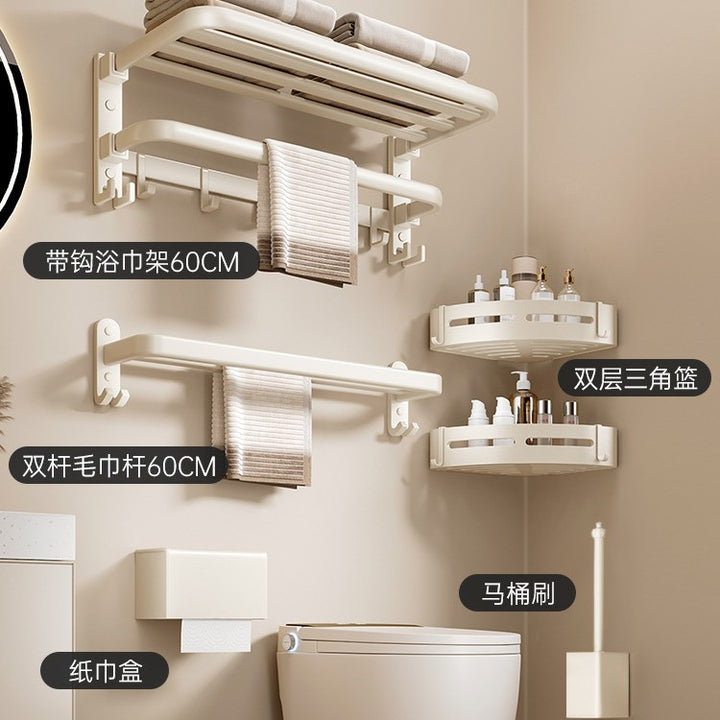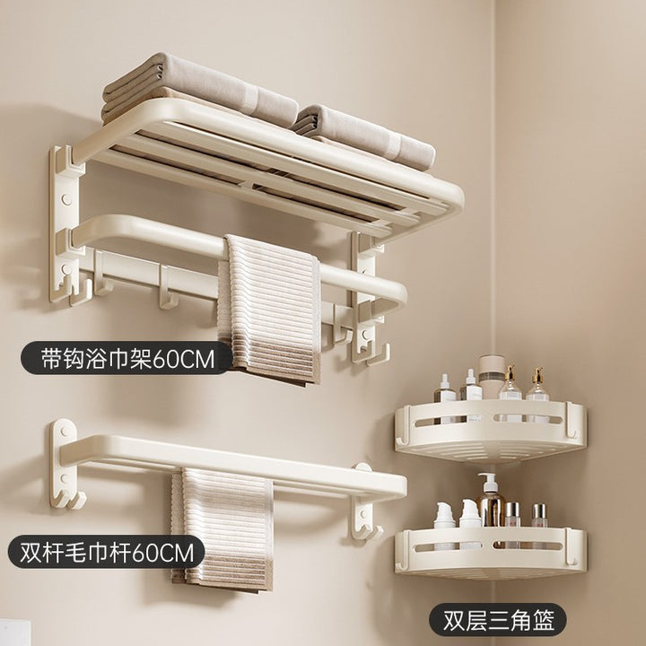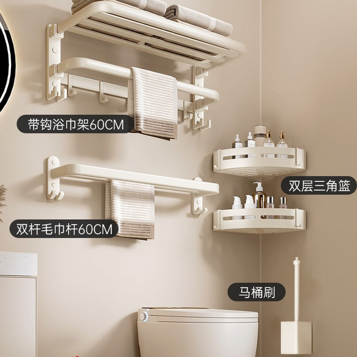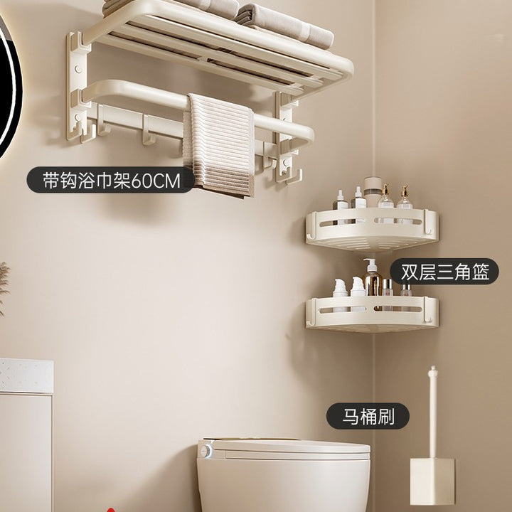 Cream wind towel rack, toilet non-punching bath towel rack, bathroom toilet wall hanging space aluminum storage hanging rod