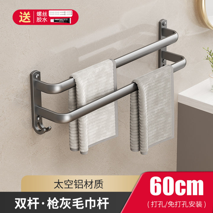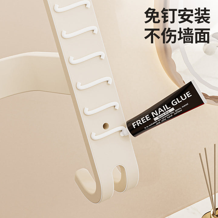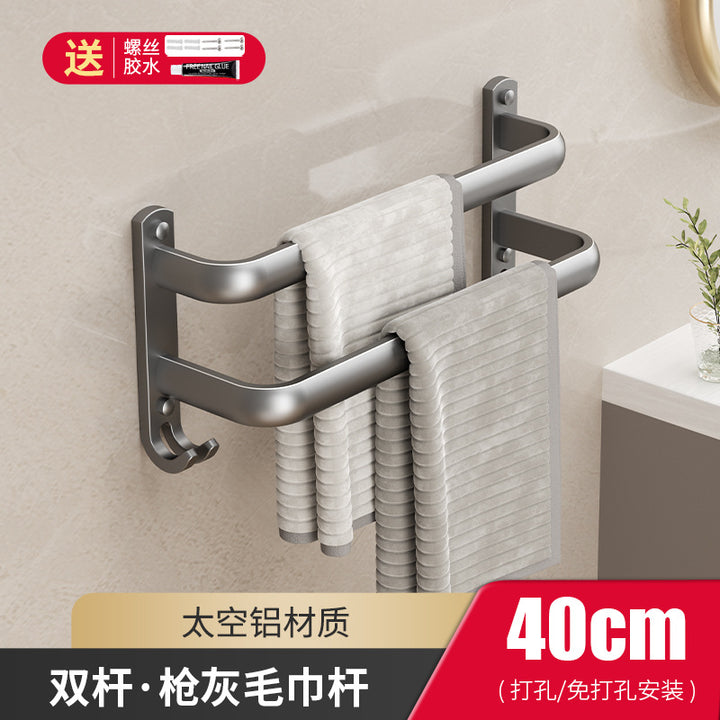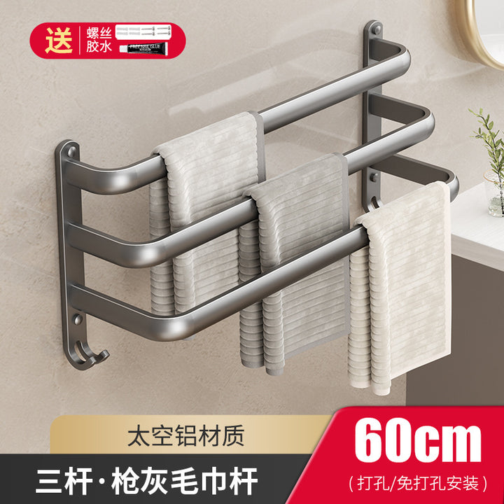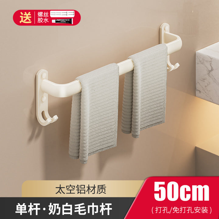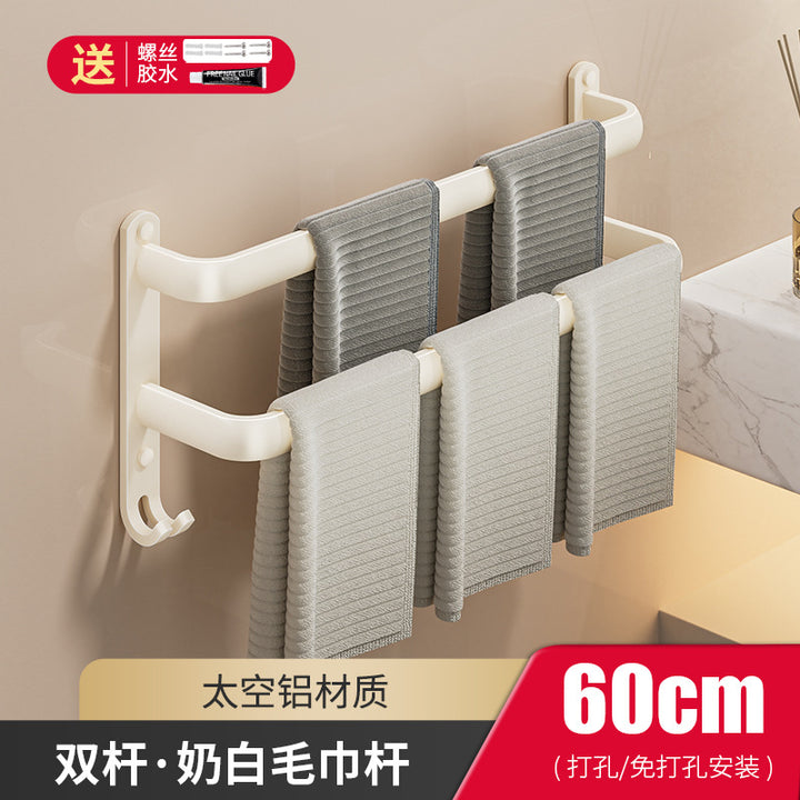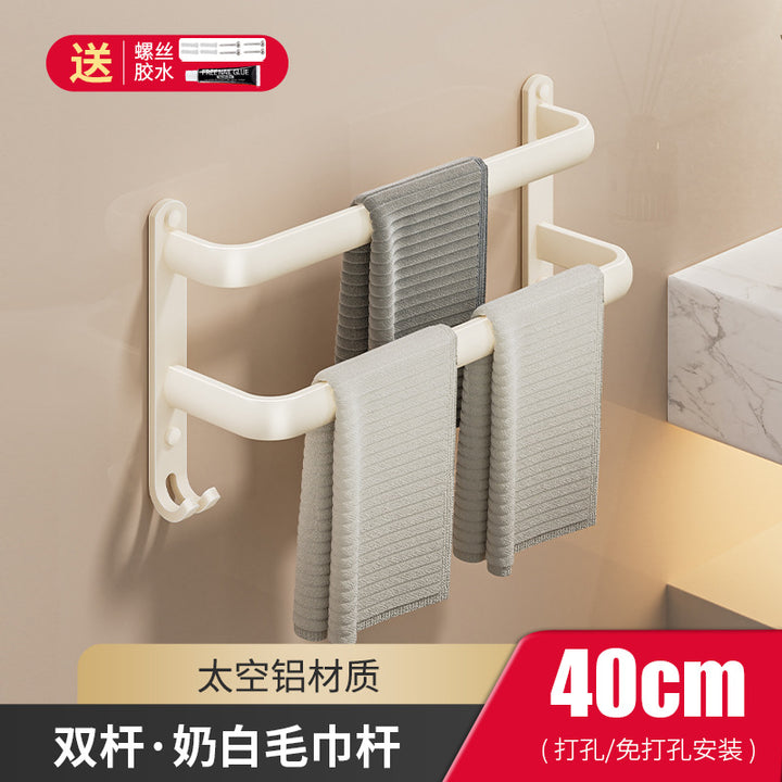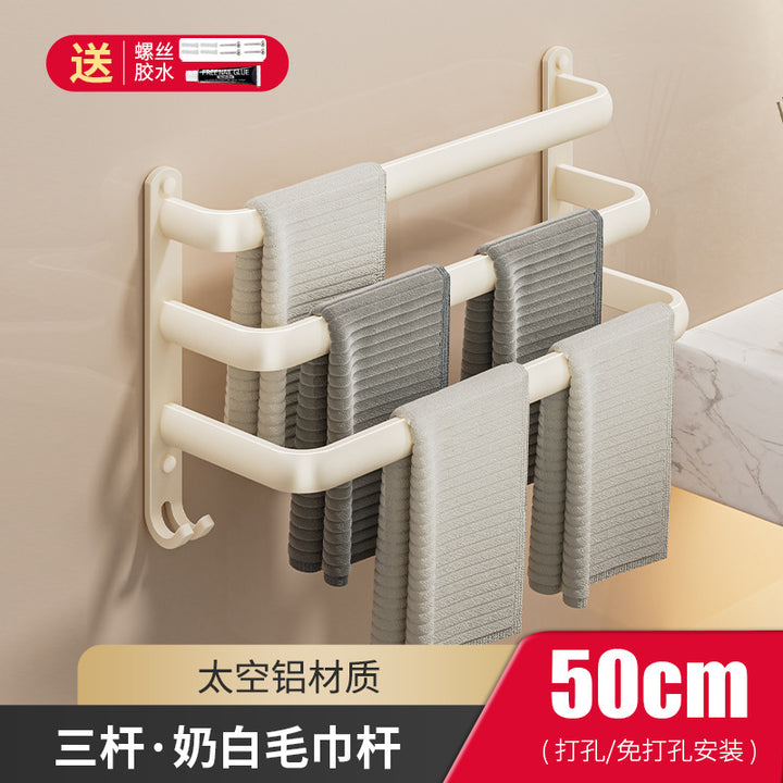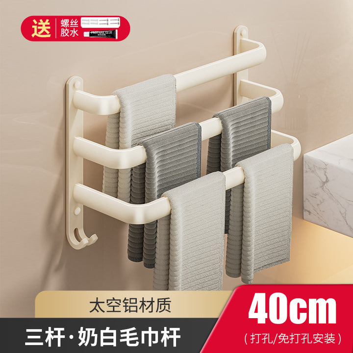 Cream wind towel rack, toilet non-punching space + bathroom wall hanging multi-layer towel bar, bath towel storage rack