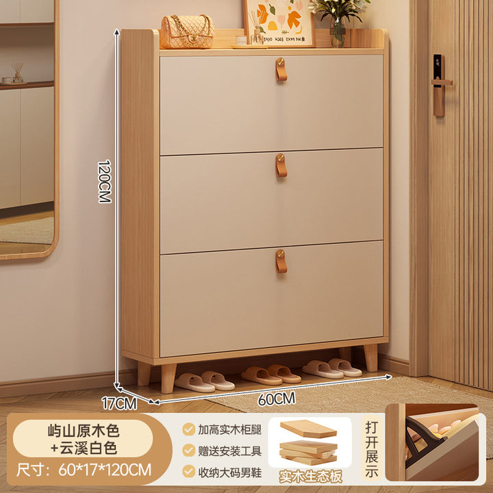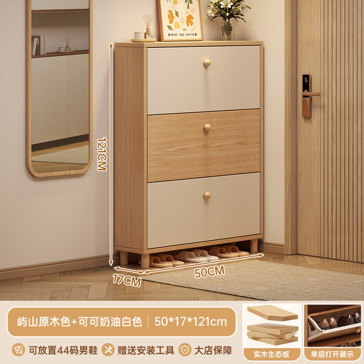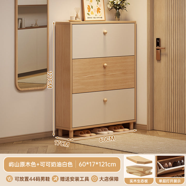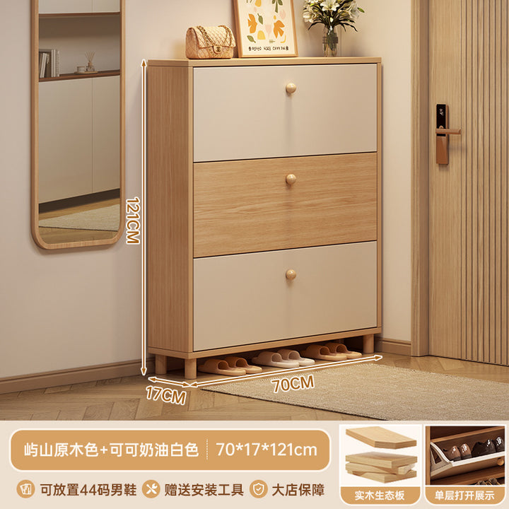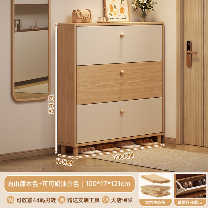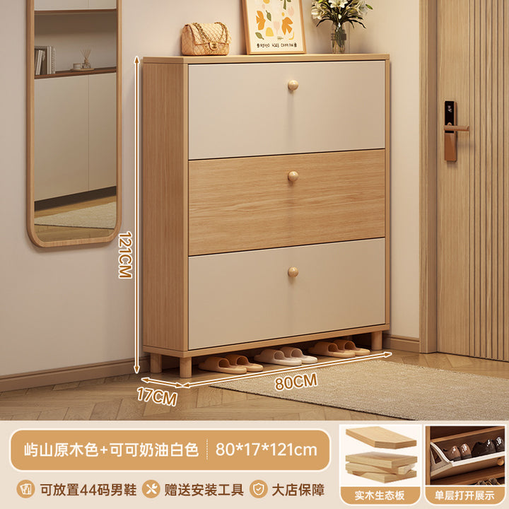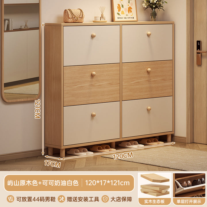Cream wind ultra-thin shoe cabinet household door tipping bucket 2025 new solid wood core shoe cabinet home entrance cabinet shoe rack