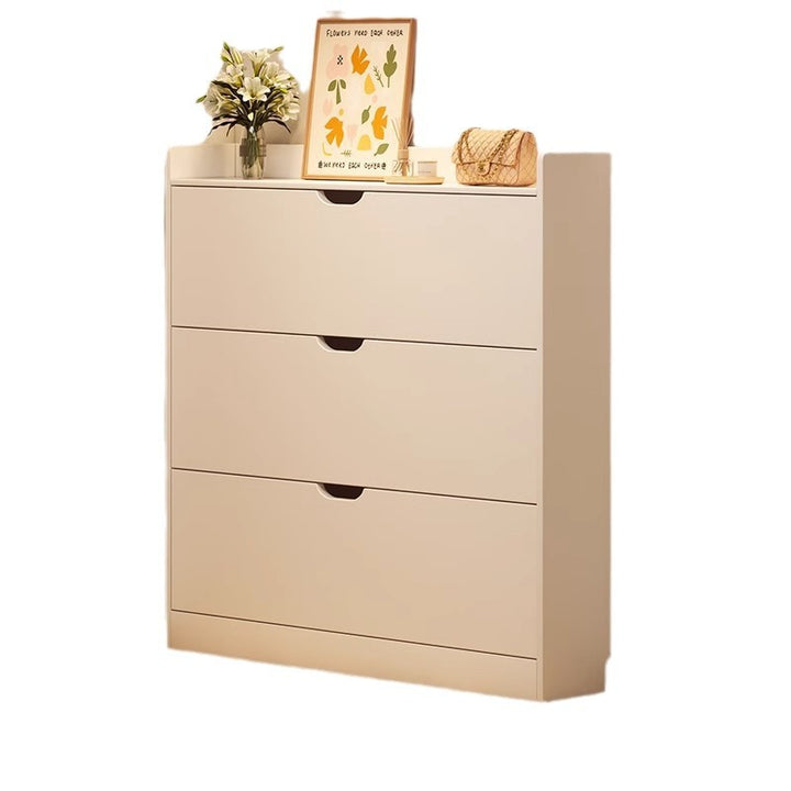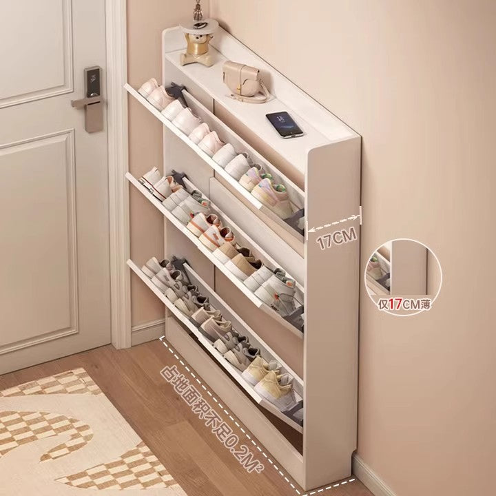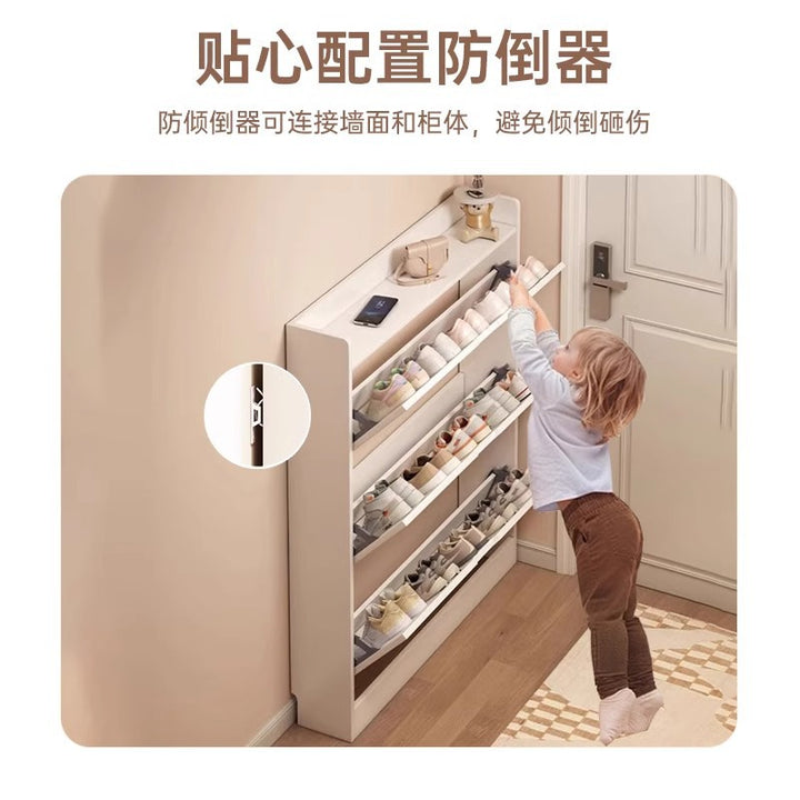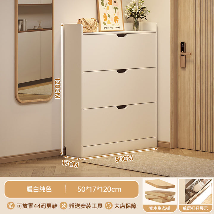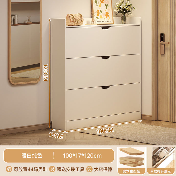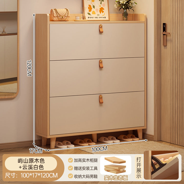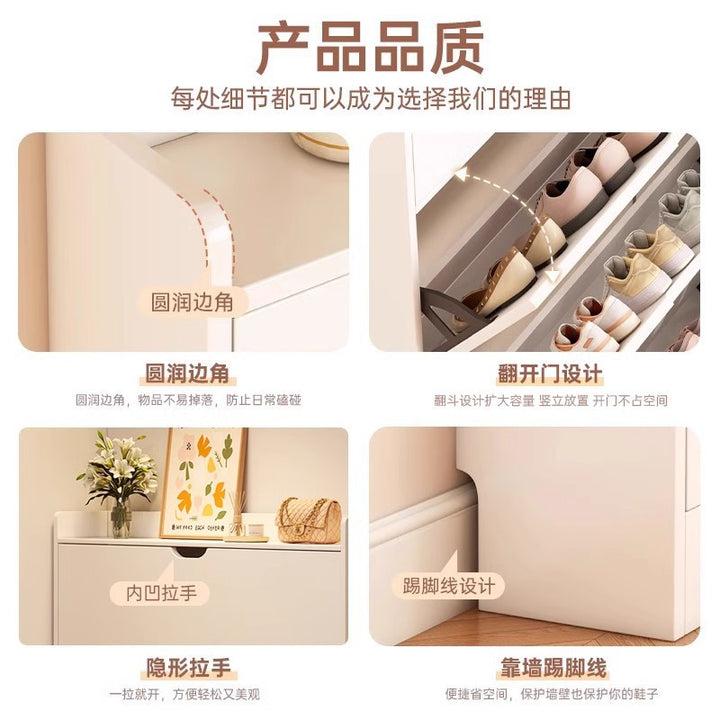 Cream wind ultra-thin shoe cabinet household door tipping bucket 2025 new solid wood core shoe cabinet home entrance cabinet shoe rack