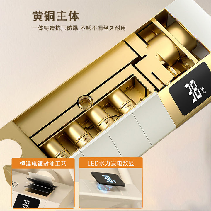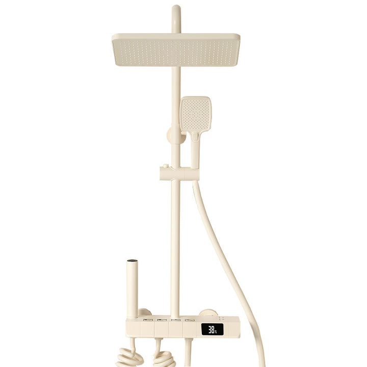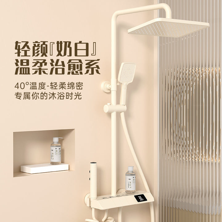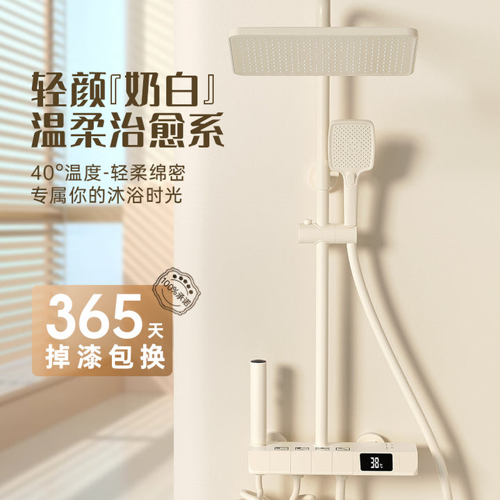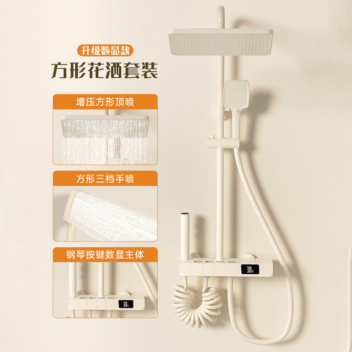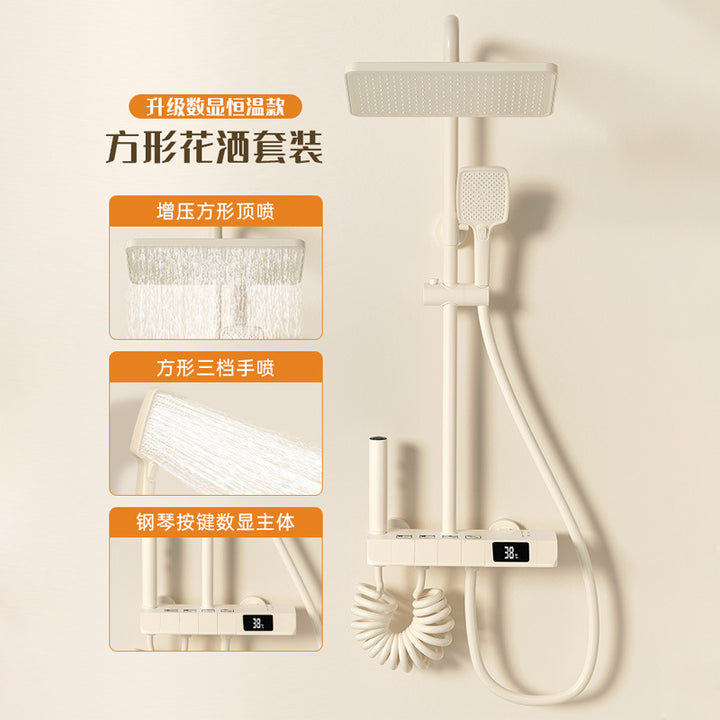 Cream wind white thermostatic shower set, shower bathroom household piano keys, rain shower, flower drying head, nozzle