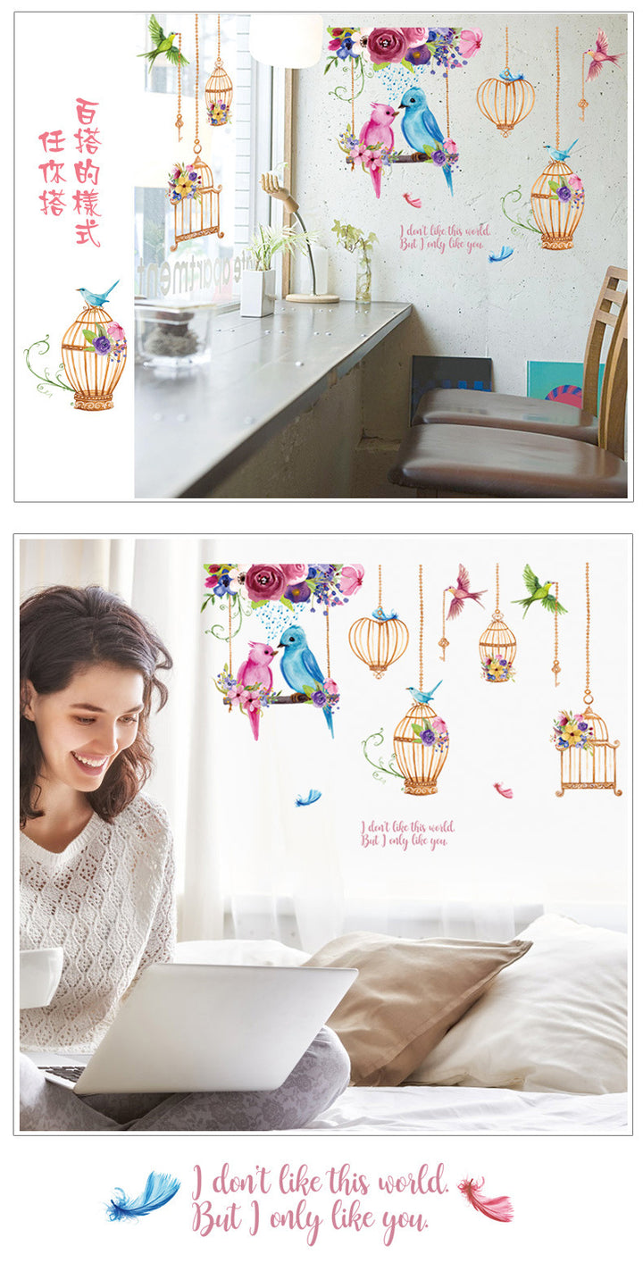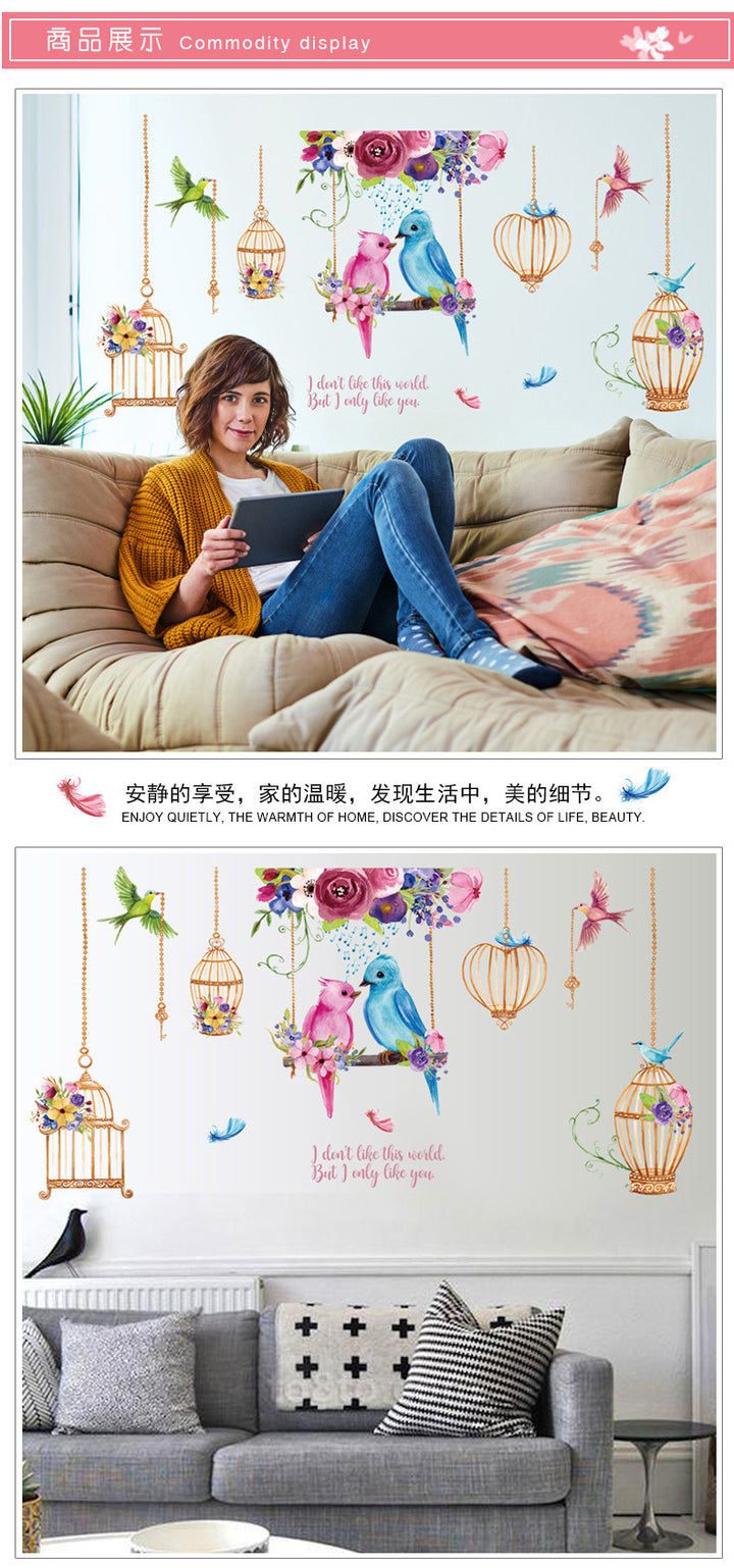 Creative Birdcage Chandelier Bedroom Entrance Living Room Dining Room TV Background Wall Decorative Wall Sticker Mural HM92018
