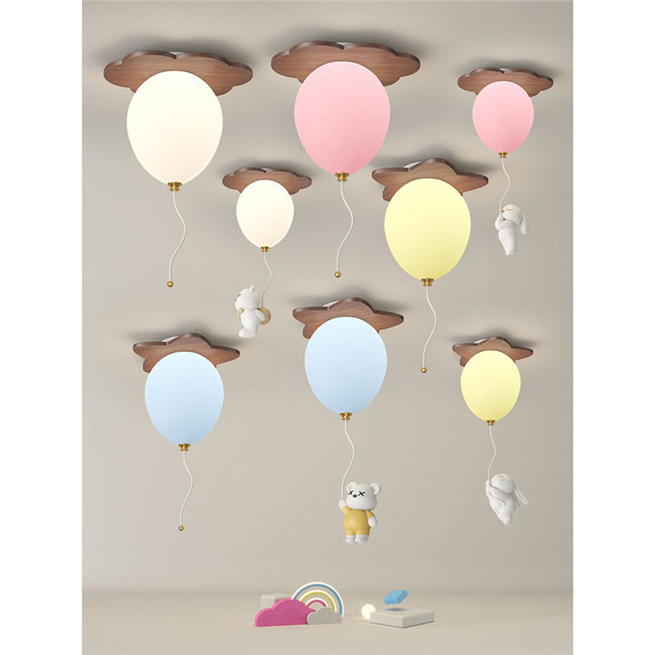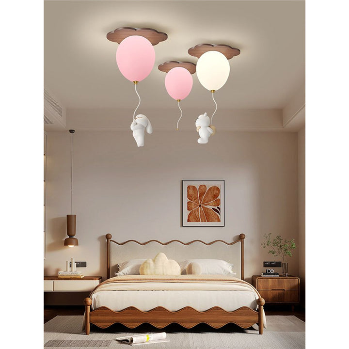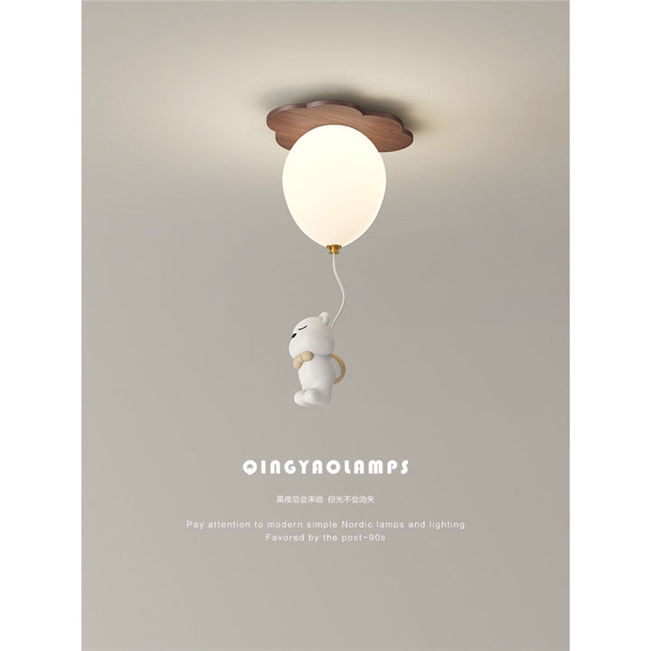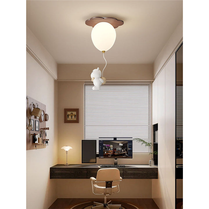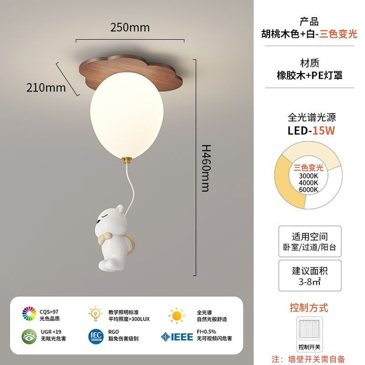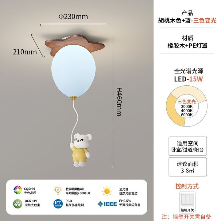Creative cartoon bear aisle light ceiling light eye protection solid wood children's room balloon decorative light