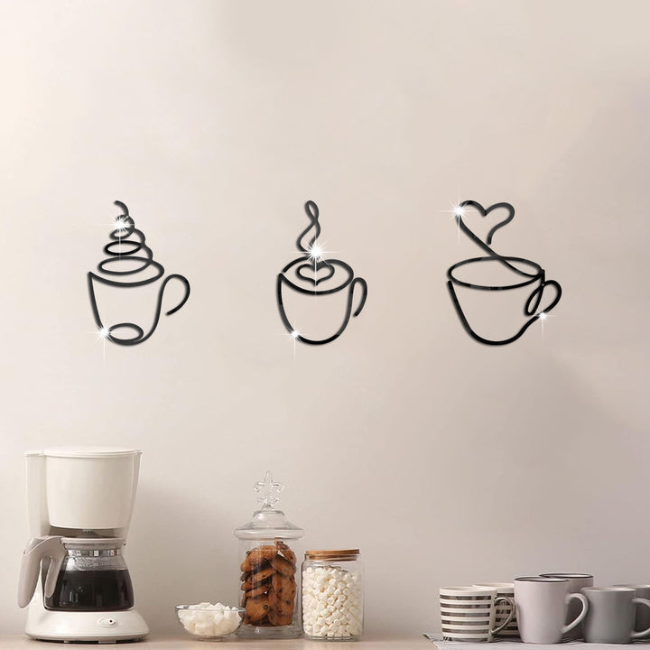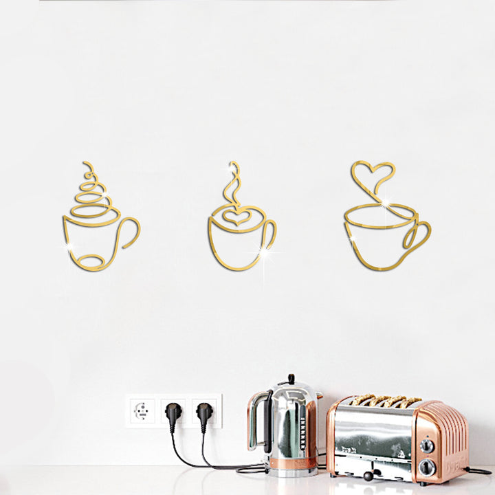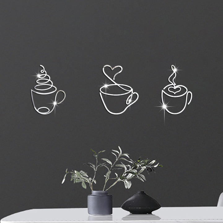 creative coffee cup decoration self-adhesive three-dimensional mirror 1mm acrylic wall sticker restaurant wall sticker
